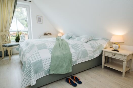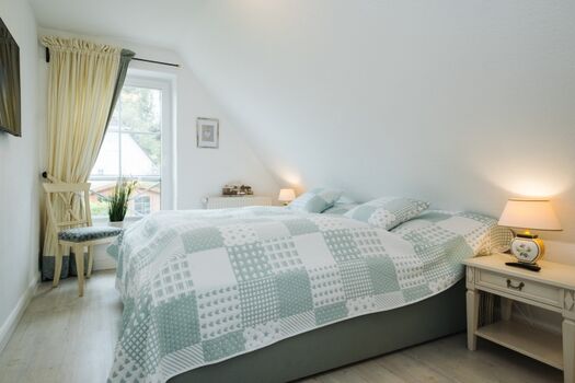 Eltern Schlafzimmer mit Ausblick nach Süden Doppelbett 1,80 x 2,00m, Kommode, Leselampe am Bett