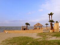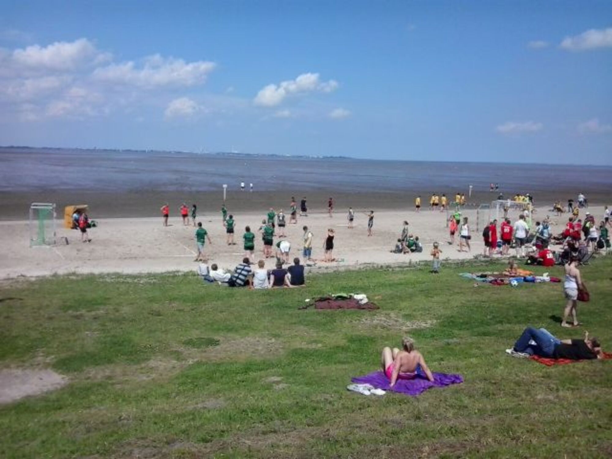 Baden, Sonnenbaden, Windsurfen, Skaten, Radfahren und Segeln und Wattwandern am Dangaster Sandstrand (hier zu den Webcams am Strand und Hafen) und im Nationalpark Niedersächsisches Wattenmeer