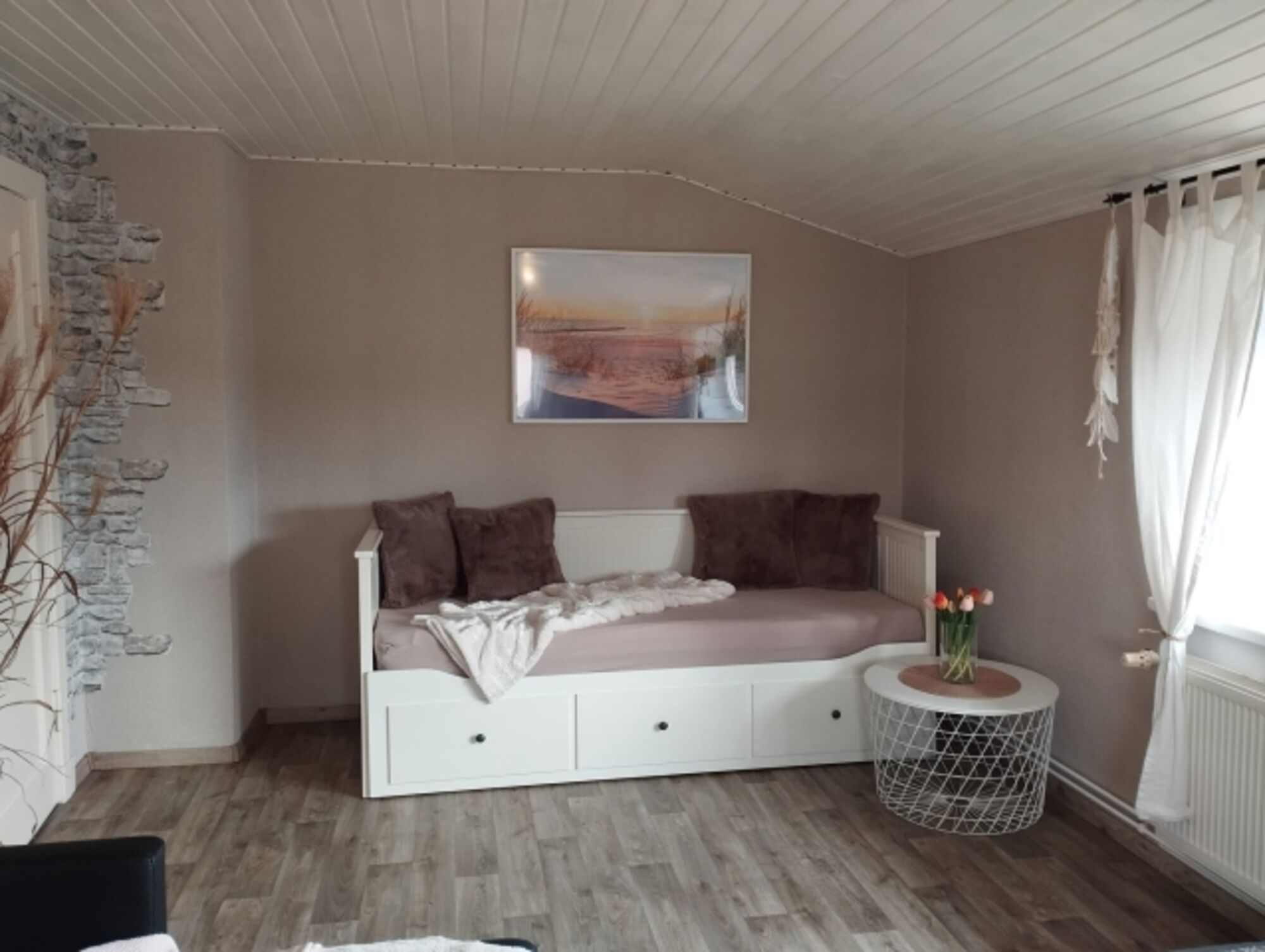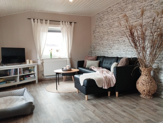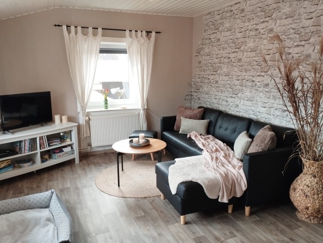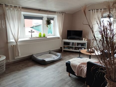 Die Wohnung befindet sich im Obergeschoss unseres Ferienhauses, welches aus drei Wohneinheiten besteht. Die Räume sind ohne Dachschrägen und großzügig auf 73qm aufgeteilt. Die Fußböden der Wohnräume sind mit Linoleum ausgelegt und daher pflegeleicht.