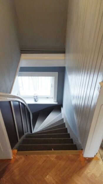 Der Treppenaufgang ist mit Teppich ausgelegt (geschlossene Stufen) und daher gut begehbar, auch für Ihren Vierbeiner.