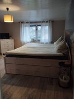 Doppelbett 1,80 x 2,00m, Kommode, Spiegel, Leselampe am Bett