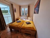 Das Schlafzimmer 2 ist mit zwei Einzelbetten 0,90 x 2, 00 m ausgestattet. Die Einzelbetten können verschieden , einzeln oder zusammenstehend, aufgestellt werden. Auch dises Schlafzimmer verfügt über eine Terrassentür zur Nordseite des Grundstückes. Verdunklungsgardinen und Plissees vorhanden. Einzelbett, Leselampe am Bett