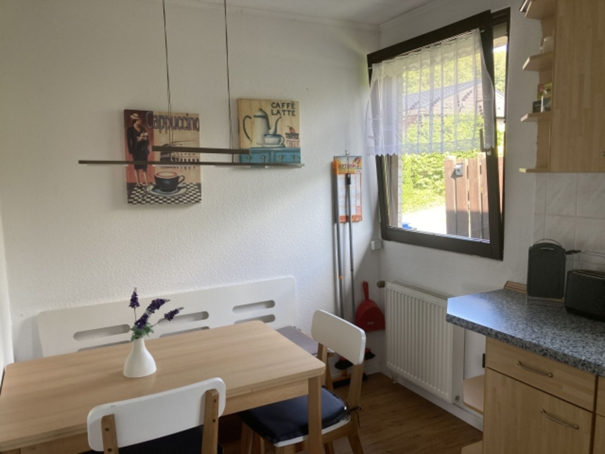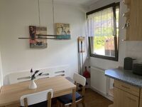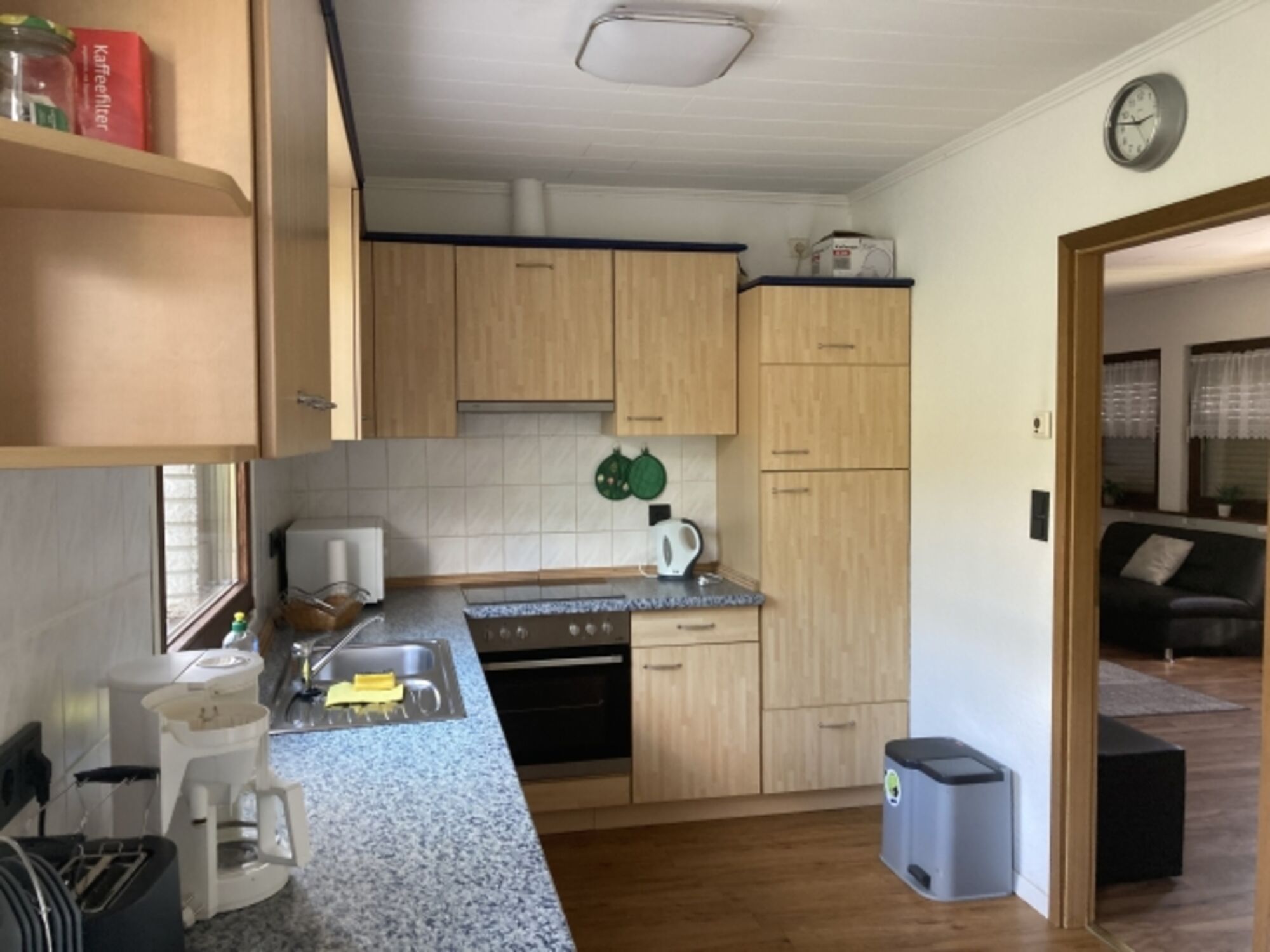 Cerankochfeld, Dunstabzugshaube, Kühlschrank mit Gefrierfach, Eierkocher, Küchenmaschine, Waffeleisen, Korkenzieher / Flaschenöffner, Öl / Essig, Geschirrhandtücher, Mülltüten, Essplatz in der Küche