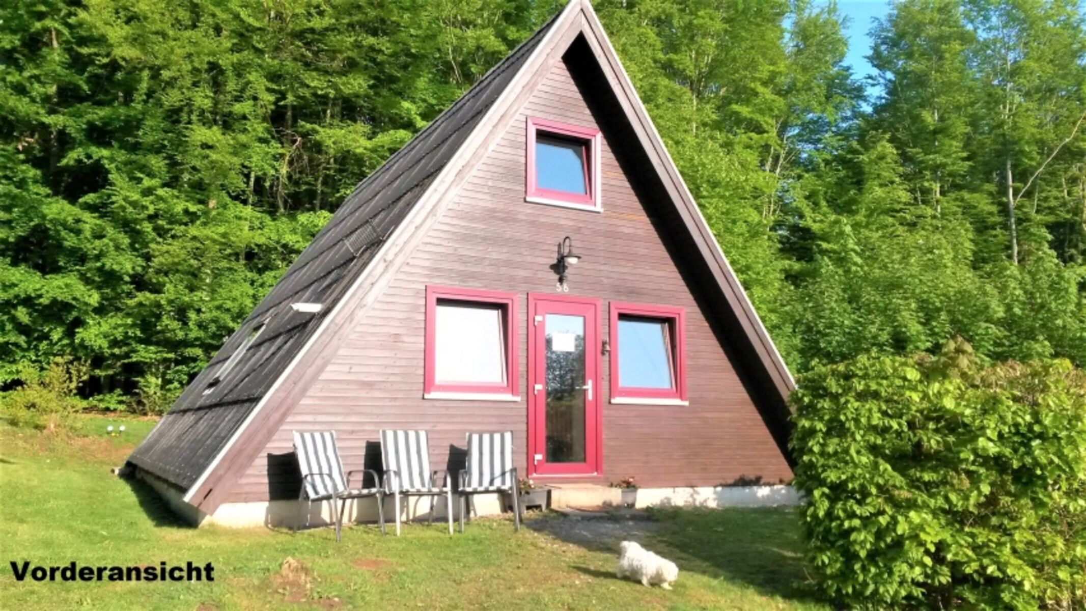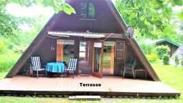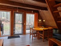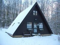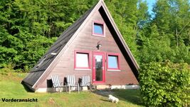 Sie verbringen Ihren Urlaub im eigenen Häuschen mitten im Wald mit teilüberdachter Terrasse und Liegewiese. Das Ferienhaus ist für 6 Personen eingerichtet. Im Erdgeschoss befinden sich Wohnzimmer mit Essecke und Küche (Kühlschrank mit Gefrierfach, Elektroherd mit Backofen, Spülmaschine, Microwelle, Kaffeemaschine, Wasserkocher, Toaster), Schlafzimmer mit Doppelbett, Bad mit Badewanne. Im Obergeschoss befinden sich 2 Schlafräume mit je 2 Einzelbetten. Es stehen Fernseher (Sat-Anlage) im Wohn- und unteren Schlafzimmer, Internet, Terrassenmöbel, Grill, Kinderbett und Hochstuhl zu Ihrer Verfügung.