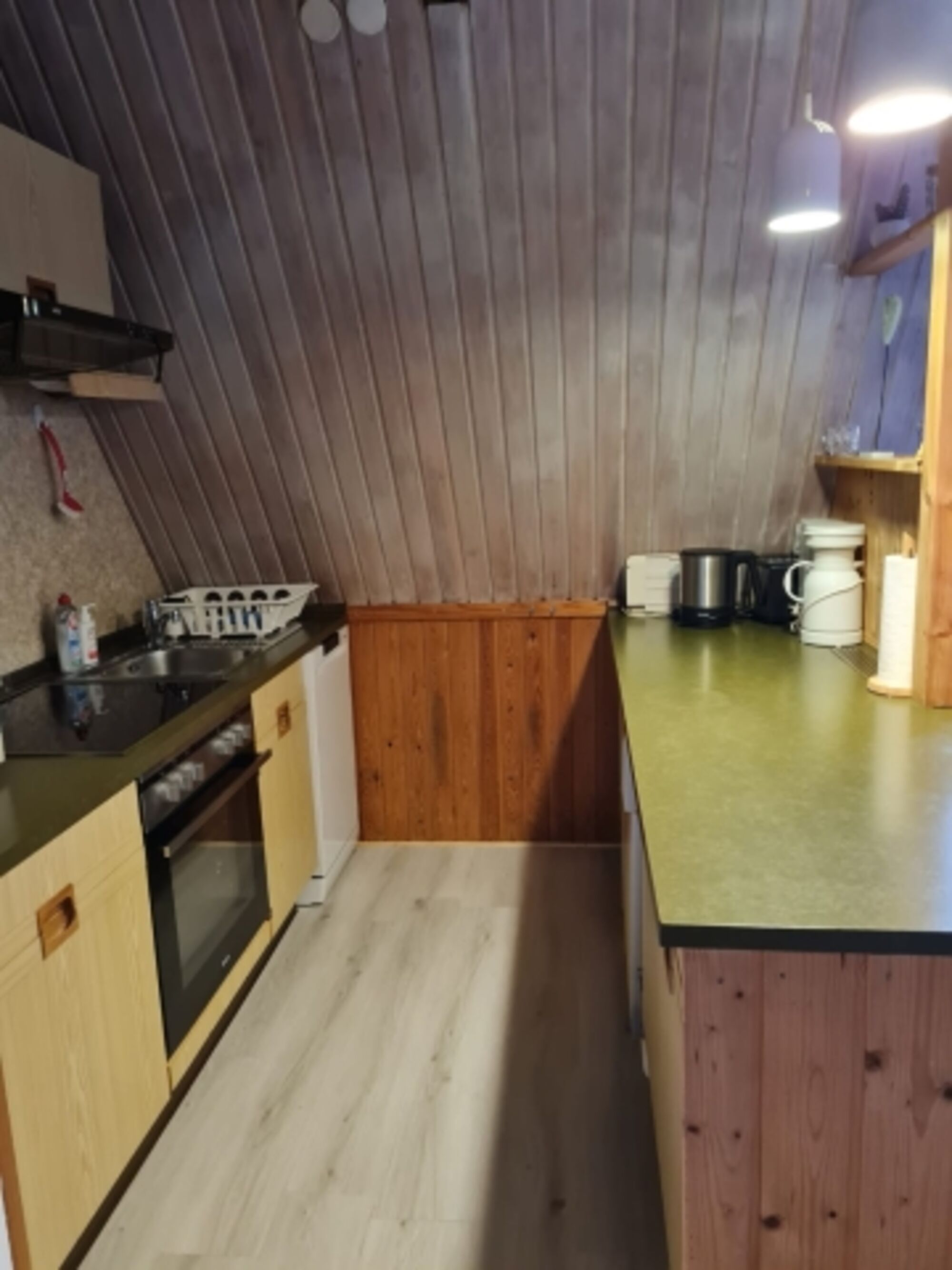 Cerankochfeld, Dunstabzugshaube, Kühlschrank mit Gefrierfach, Mixer, Korkenzieher / Flaschenöffner, Gewürze (Salz, Pfeffer, Zucker), Öl / Essig, Mülltüten