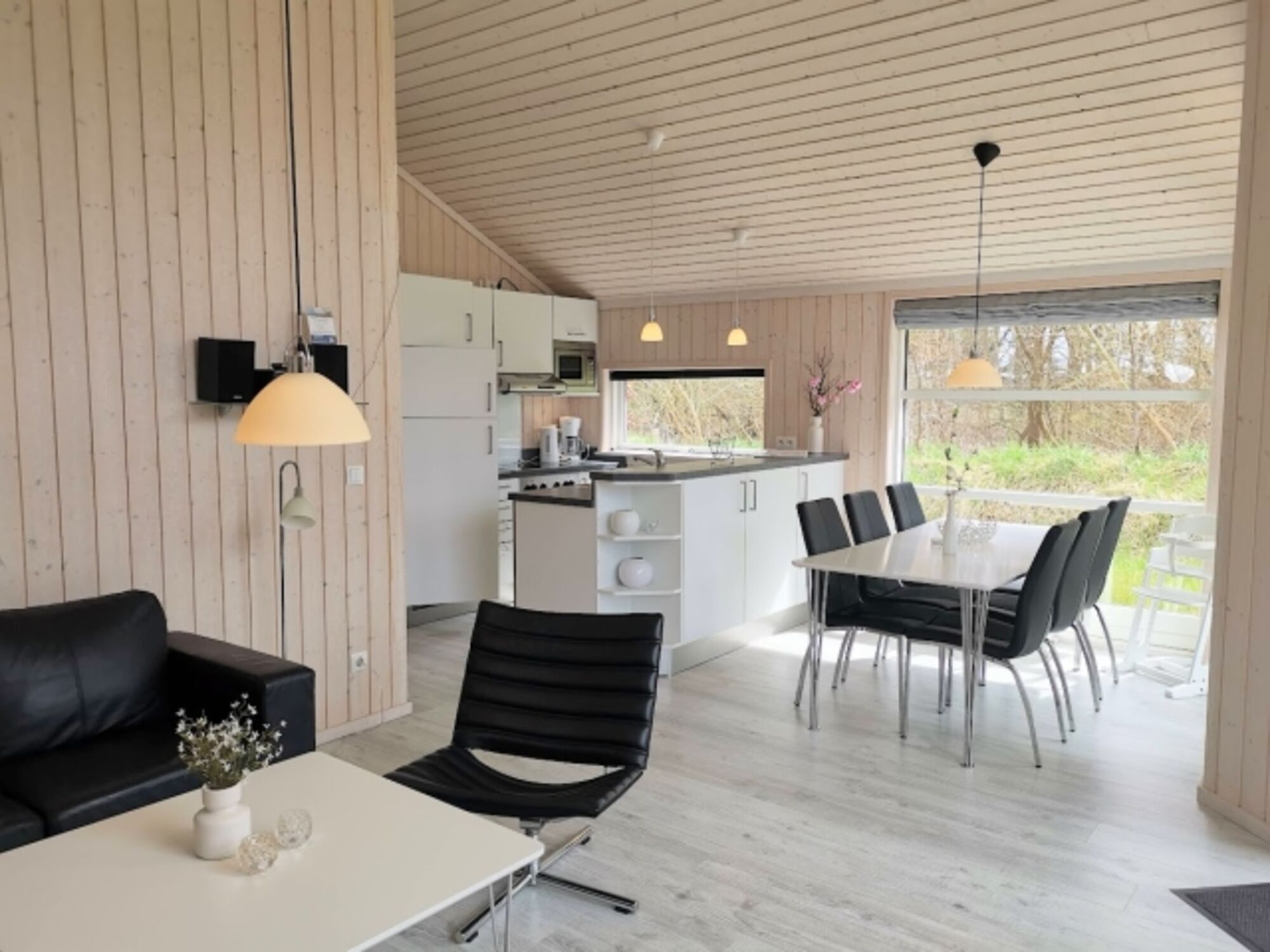 Die moderne skandinavische Einrichtung verleiht dem Haus eine zeitgemäße Note und hohen Komfort. Großflächige Fenster schaffen eine lichtdurchflutete und angenehme Wohnatmosphäre.
