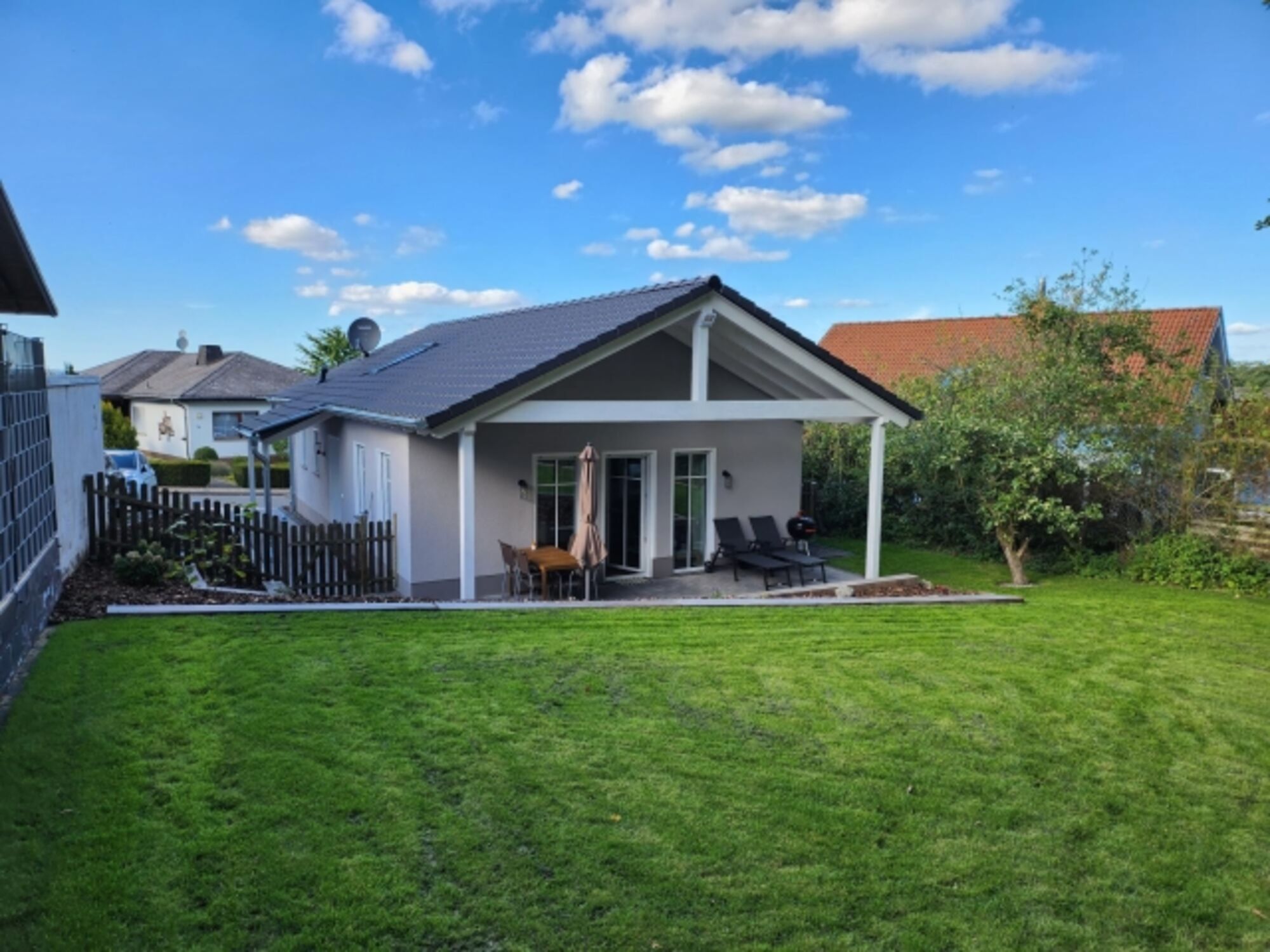 Gemütliches, freistehendes Ferienhaus Baujahr 2023 mit großem Garten und Terrasse für bis zu 4 Personen.