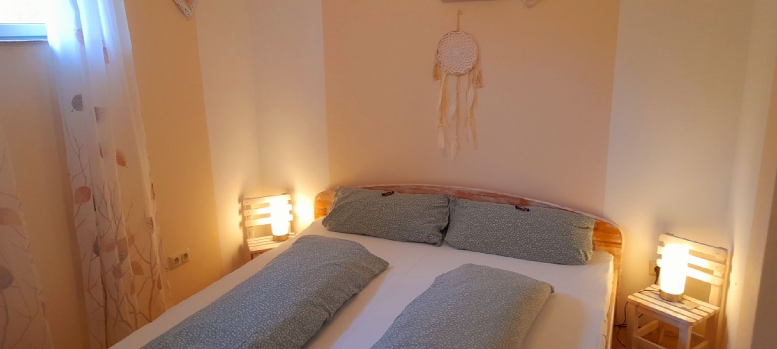 Zusätzliche Decke auf Wunsch. Wir bitten um Ihr Verständnis, daß Ihr Vierbeiner nicht im Bett schlafen darf. Doppelbett 1,80 x 2,00m, Spiegel, Leselampe am Bett, Fliegengitter