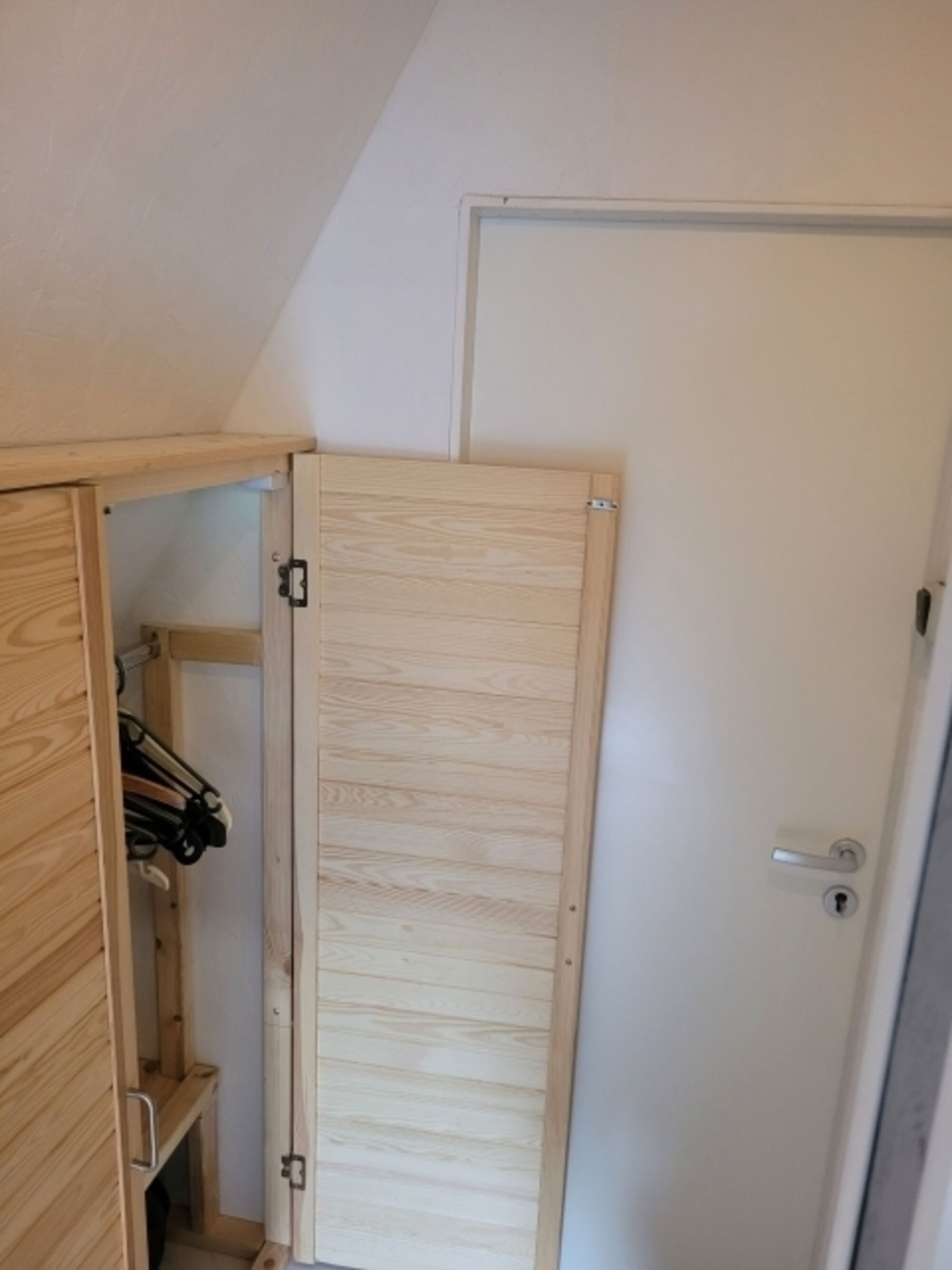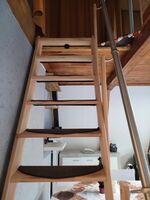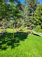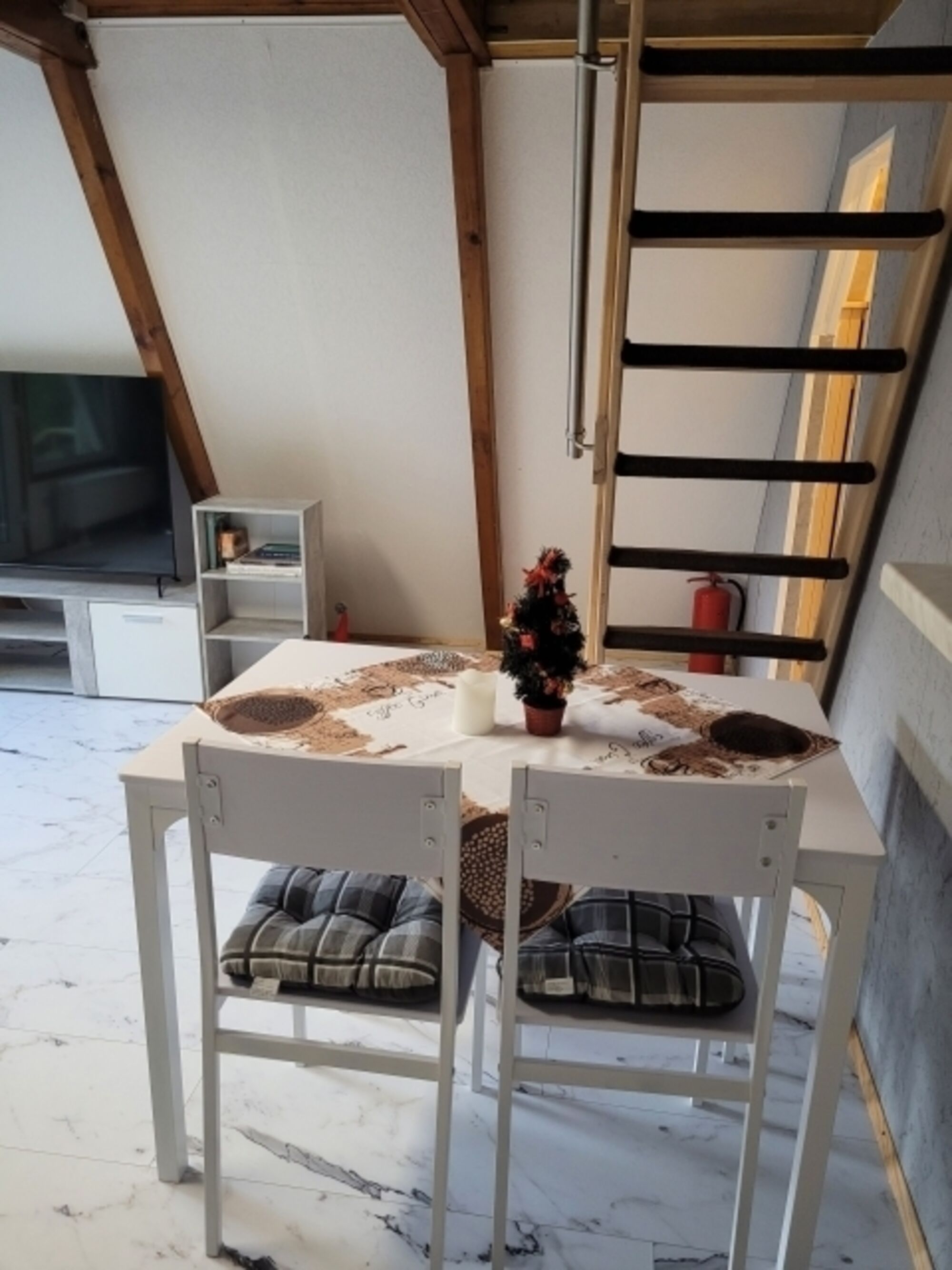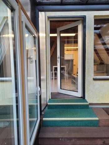 Gemütlich eingerichtetes Finnhaus für max. 4 Personen. Ausgestattet mit einem Wohnraum mit ausziehbarer Couch und klappbarem Bartisch mit 4 Hockern für max 4 Personen, Sat.TV, Küche mit Mikrowelle, Kühlschrank mit Gefrierfach, 2-Platten-Ceranfeld, Toaster, Kaffeemaschine + zusätzlicher Kaffeekapsel-Maschine und Wasserkocher. Einem Duschbad mit WC, sowie zwei separaten Schlafräumen auf der oberen Etage. In dem einen Schlafraum mit Doppelbett und Kommode, im zweiten Schlafraum gegenüber mit einem Einzelbett. Im EG befindet sich ein kleiner Einbau-Kleiderschrank. Kinderbett möglich, bitte bei Buchung angeben. Das Finnhaus steht mit einem weiteren Ferienhaus auf einem ca. 800m² großen, komplett eingezäunten Gemeinschaftsgrundstück. Dieses Grundstück steht zur gemeinschaftlichen Nutzung mit dem Mieter des Ferien-Bungalows zur Verfügung. Jedem Ferienhaus steht ein eigener Grillplatz und ein Pavillon mit Gartenmöbeln zur Verfügung. Das Finnhaus verfügt zusätzlich über einen Wintergarten (12m² Größe ,Baujahr 2022) mit ausziehbarer Couch und einem kleinen Esstisch. Ideal für Hundebesitzer gibt es auf dem Gemeinschaftsgrundstück Trainingsgeräte für Hunde. Zusätzlich befindet sich im Haupthaus eine Tierphysiotherapie Praxis, die von der Vermieterin betrieben wird.