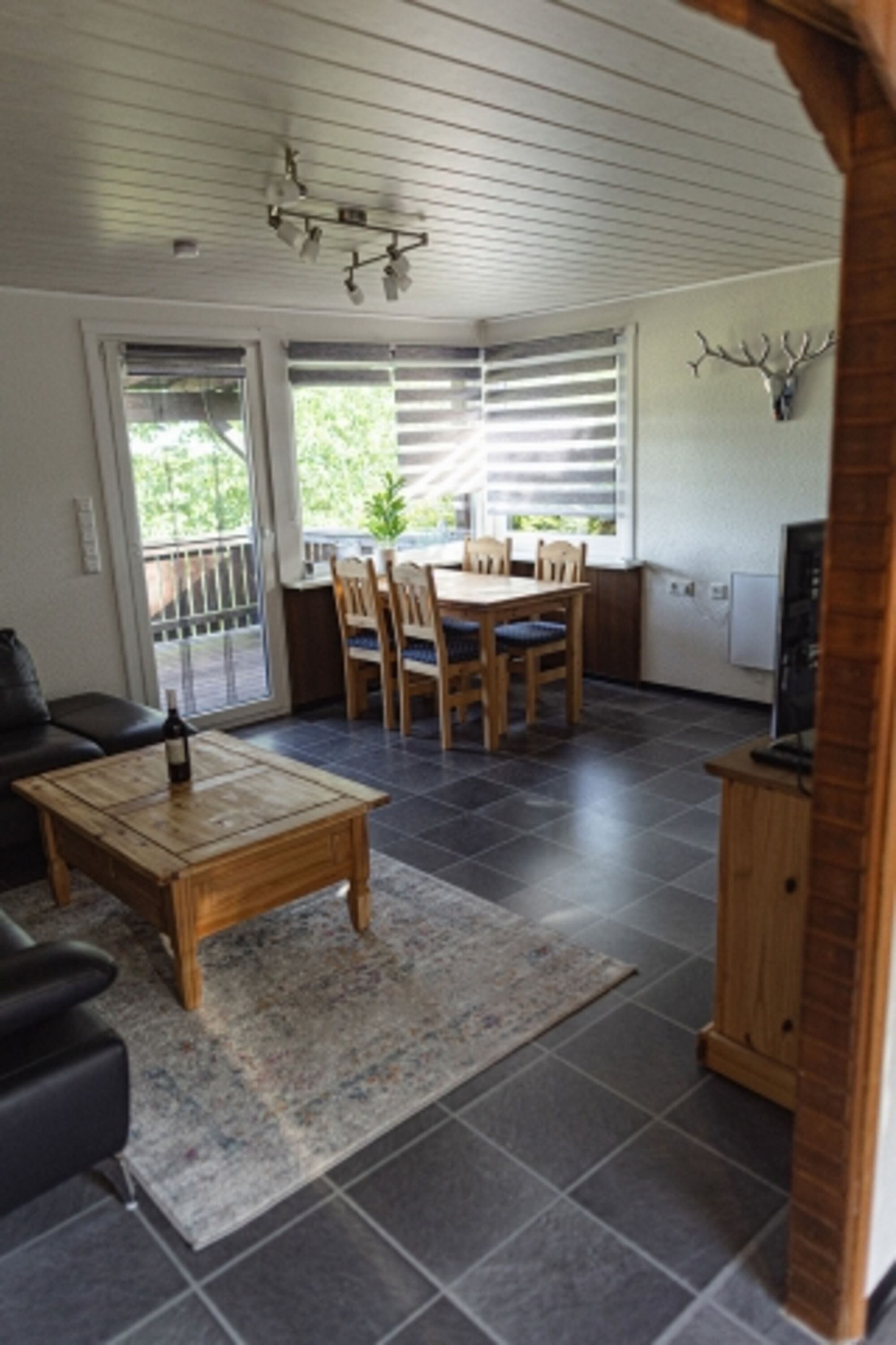 TV, TV-Sat, SMART-TV, TV-Flachbildschirm, Bücher, Kaminofen, Eckcouch, Fliegengitter