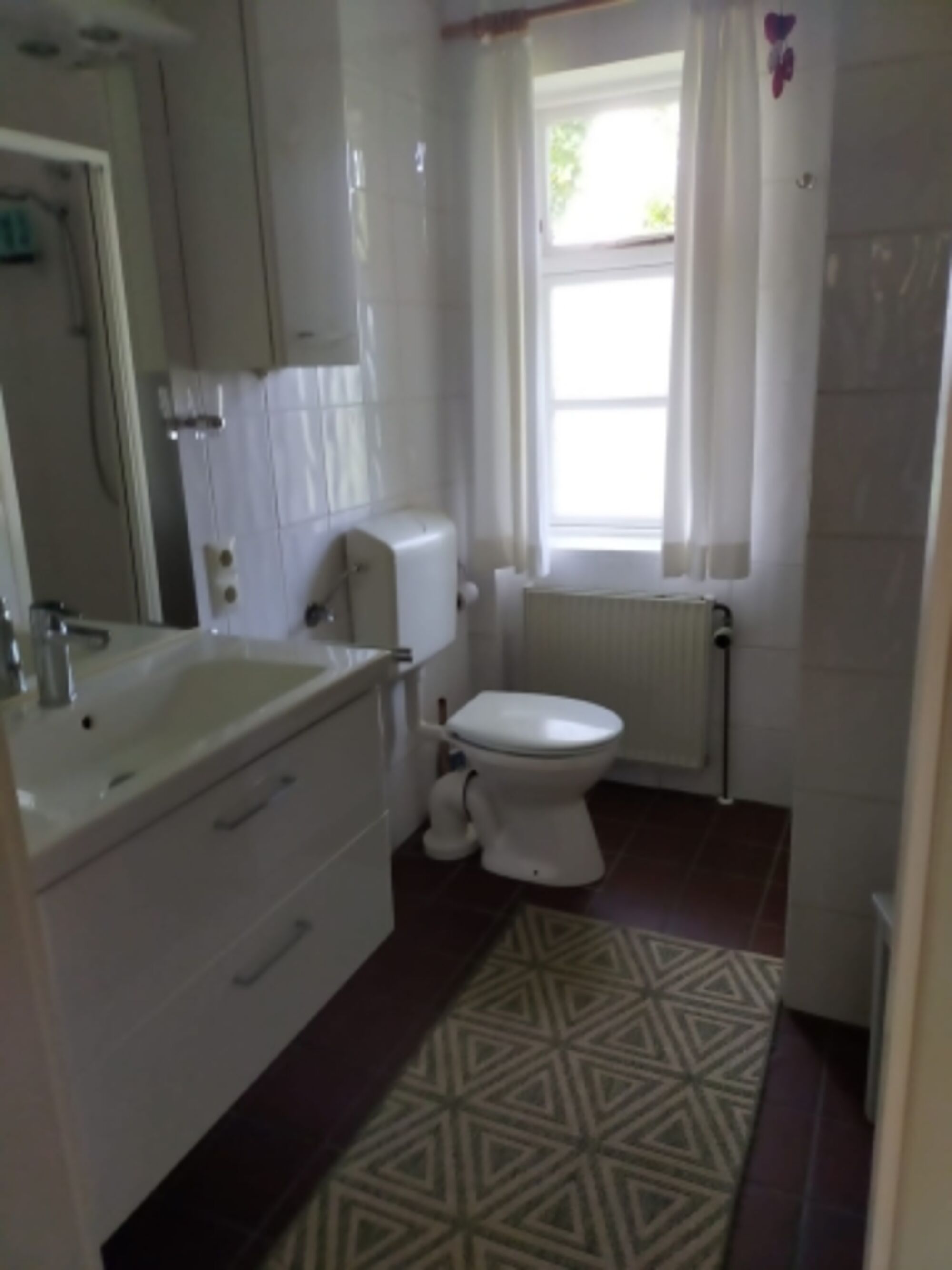 Zwischen den beiden Schlafzimmern befindet sich das Duschbad mit Waschmaschine.