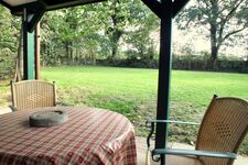 Das Ferienhaus mit eigener Zufahrt ist fest eingezäunt, 1.10 m hoch und liegt versteckt zwischen Obstgarten, Wald und unseren Weiden.