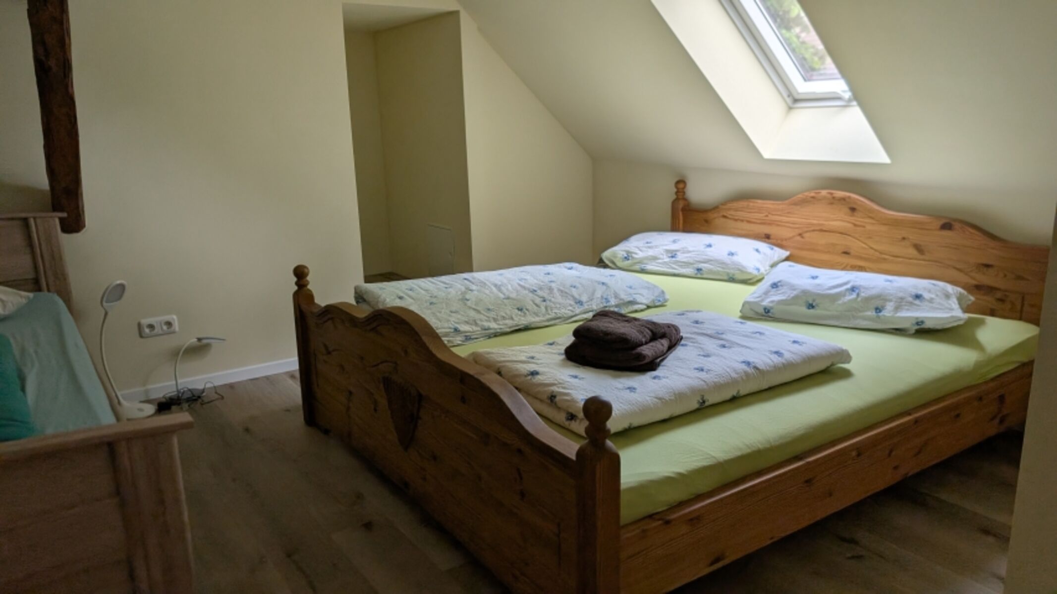 Doppelbett 1,80 x 2,00m, Einzelbett, Kommode, Leselampe am Bett, Fliegengitter