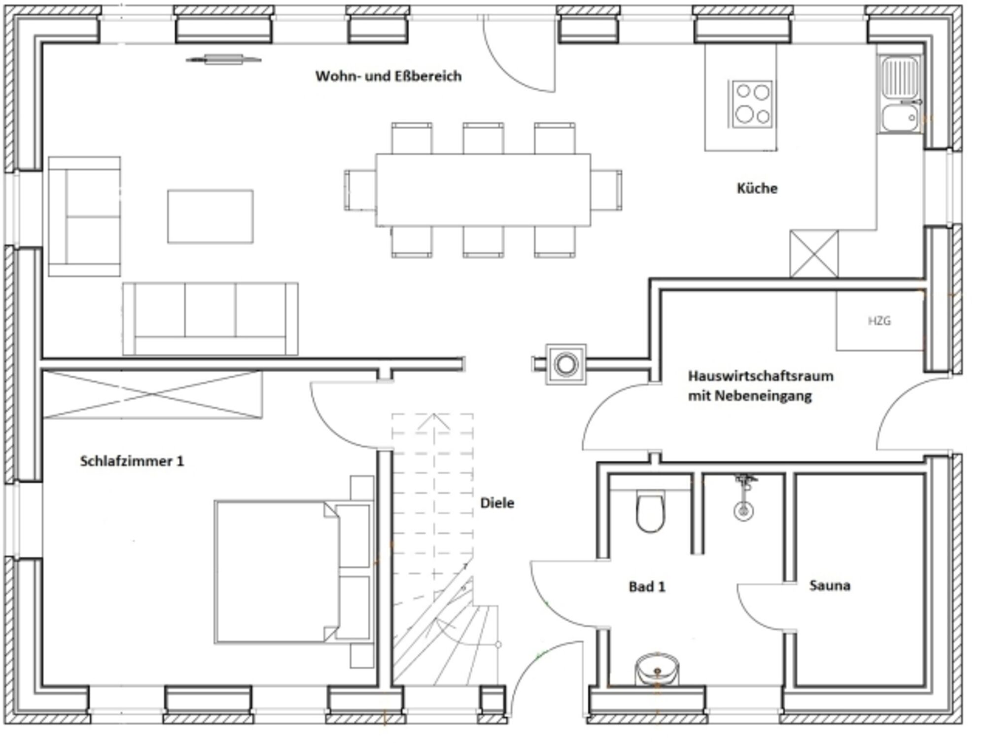 Auf Wunsch sind bis zu 12 Personen zusammen mit dem baugleichen Nachbarhaus buchbar.