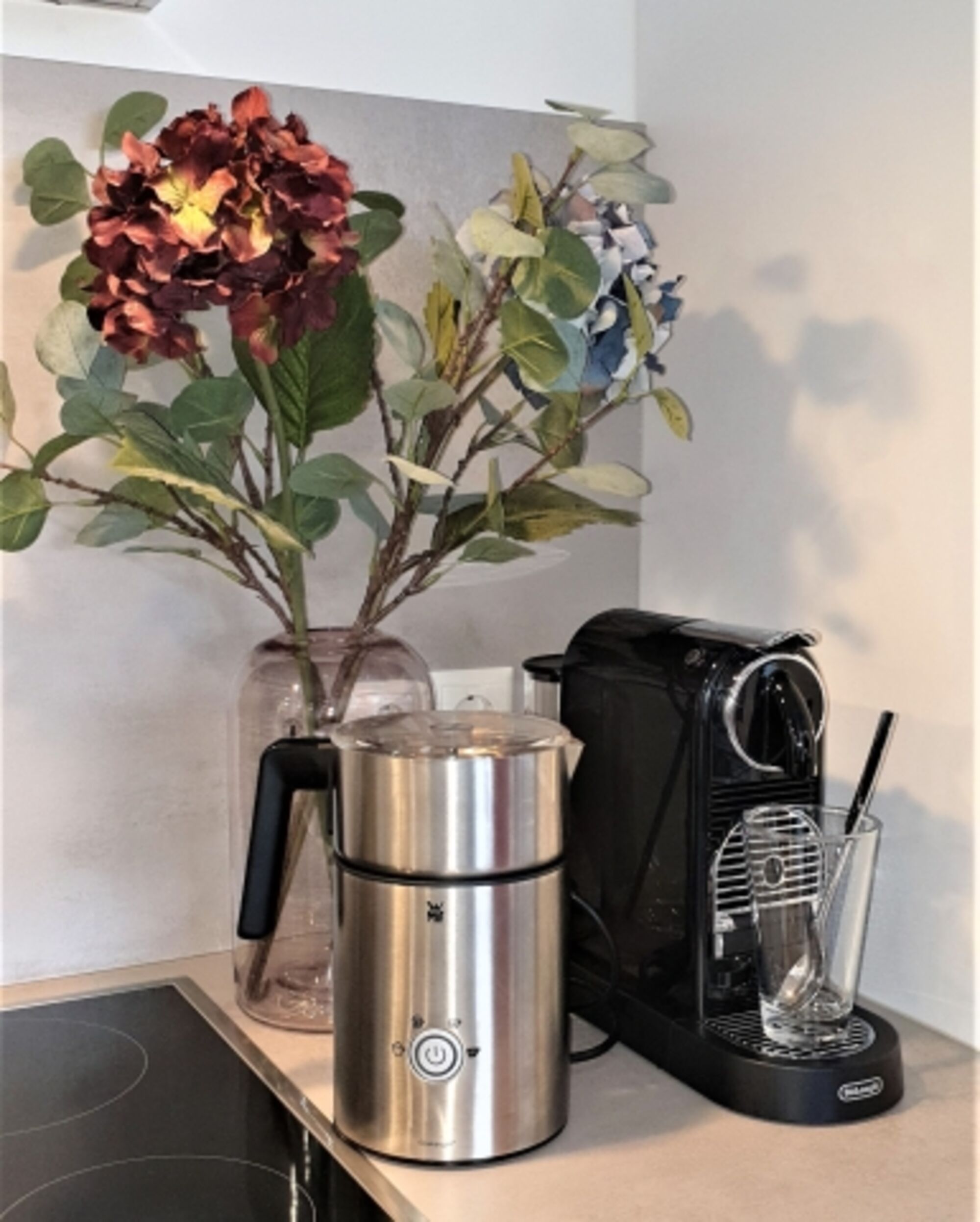 Induktionsherd, Kühlschrank mit Gefrierfach, Gefrierschrank, Nespresso-Automat, Geschirrhandtücher, Mülltüten