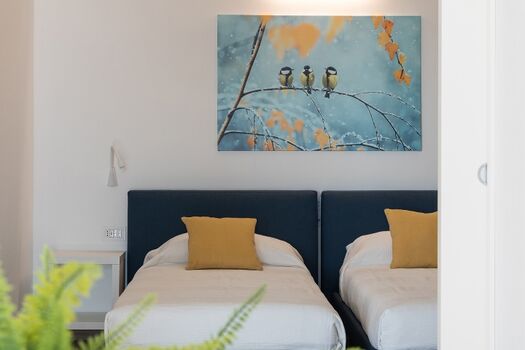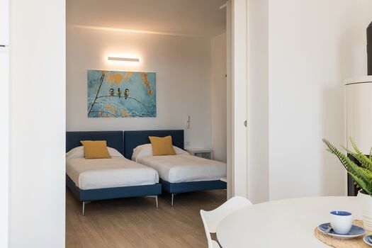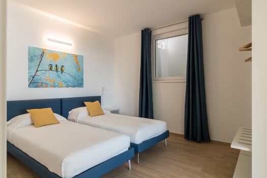 In der Wohnung befinden sich zwei Schlafzimmer, eins mit Doppelbett und das andere mit 2 Einzelbetten.