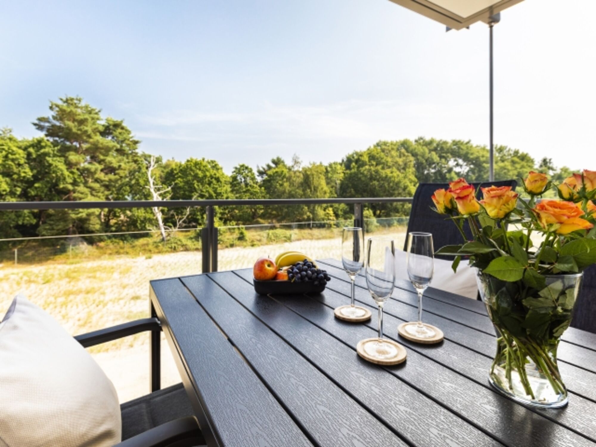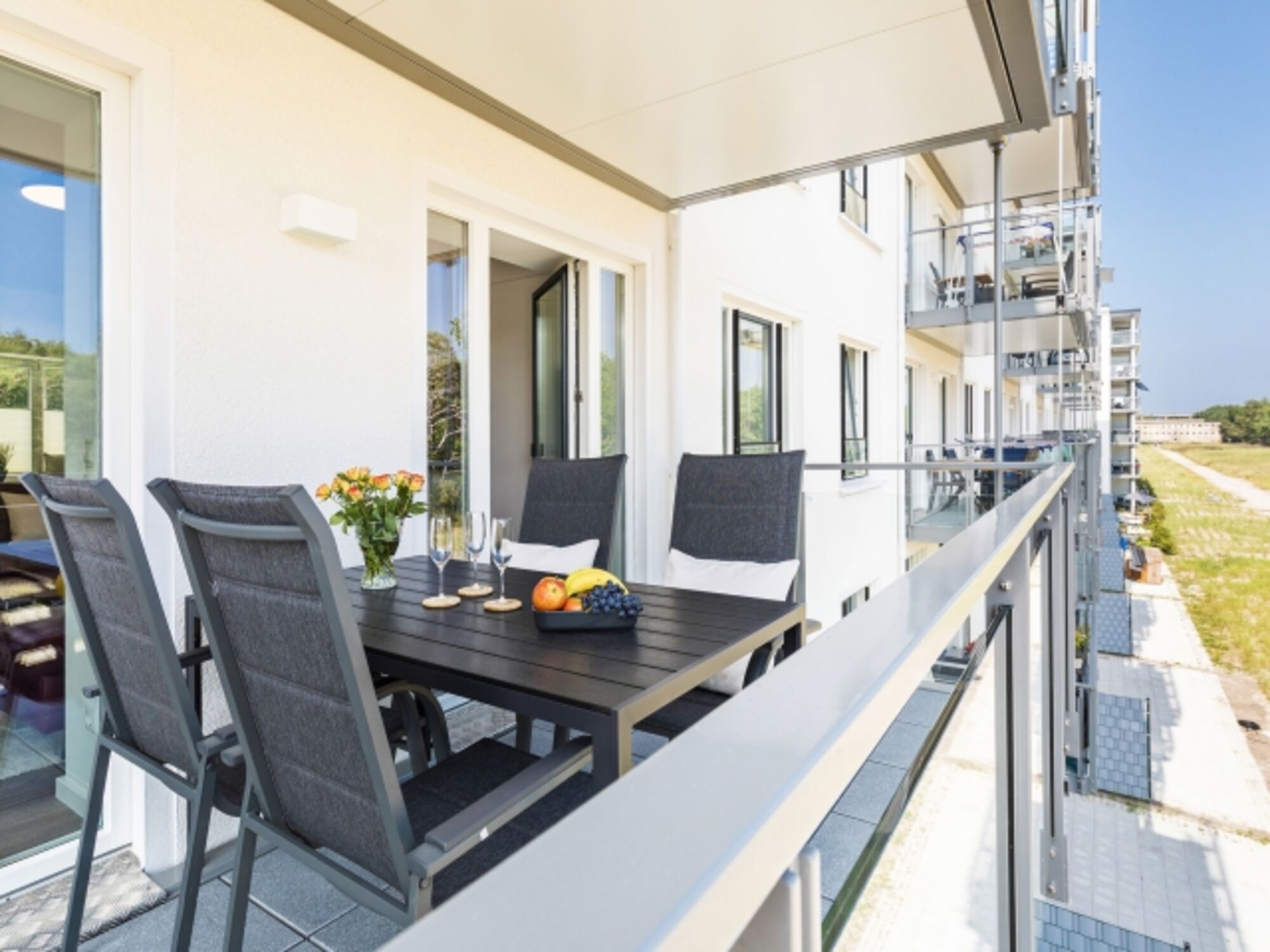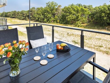 Balkon: Genießen Sie entspannte Stunden auf dem Balkon mit Blick auf das Meer und die sanfte Dünenlandschaft.