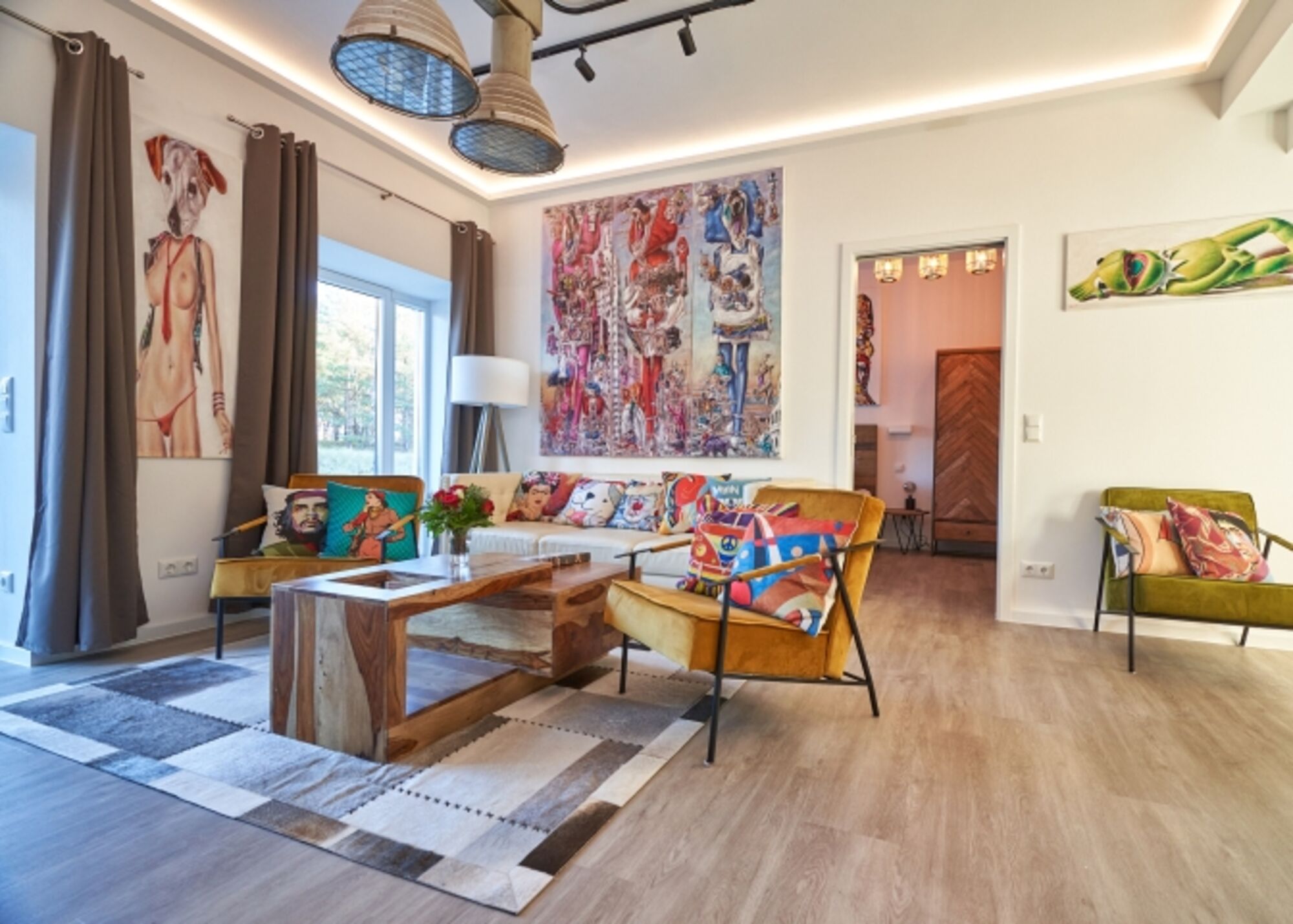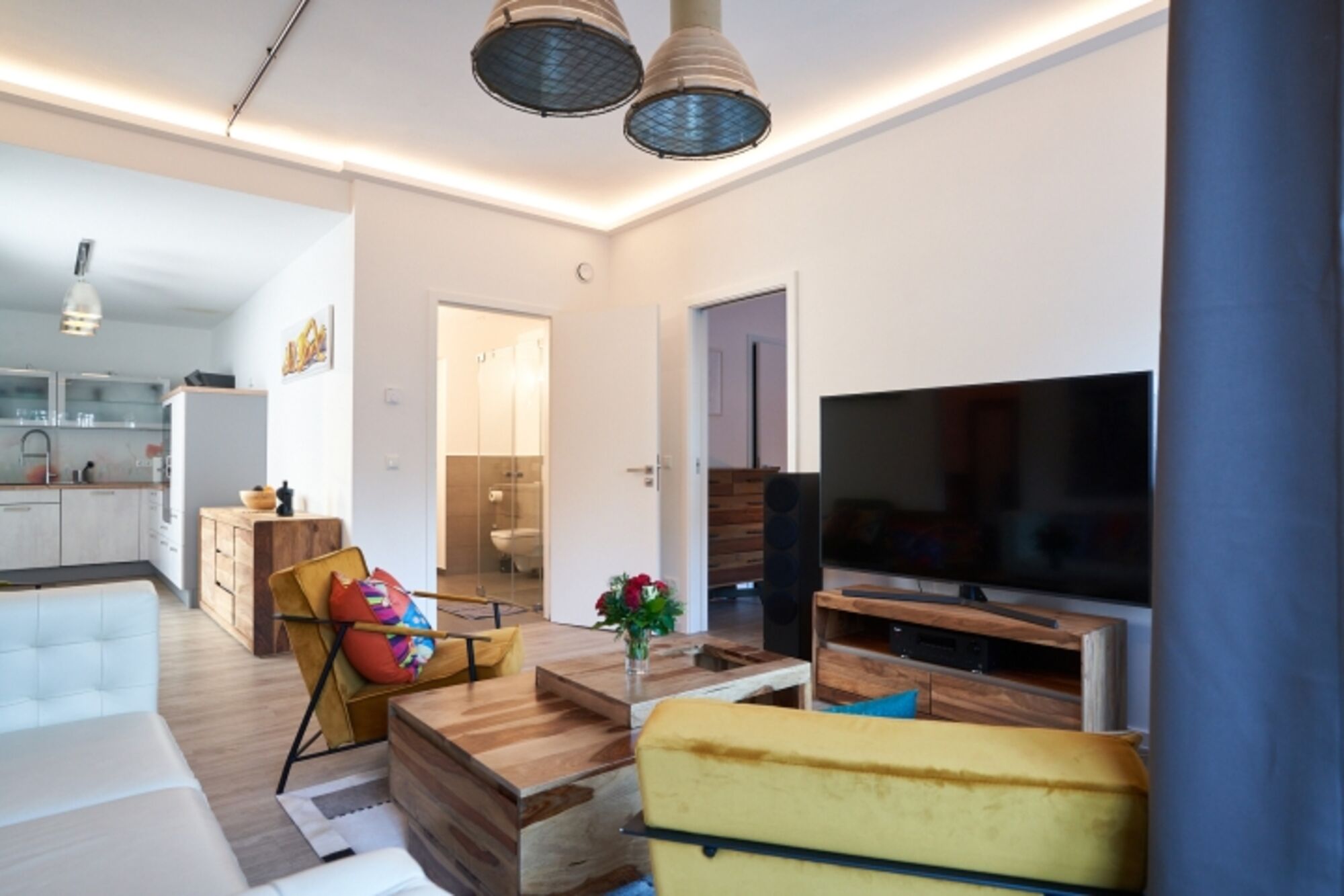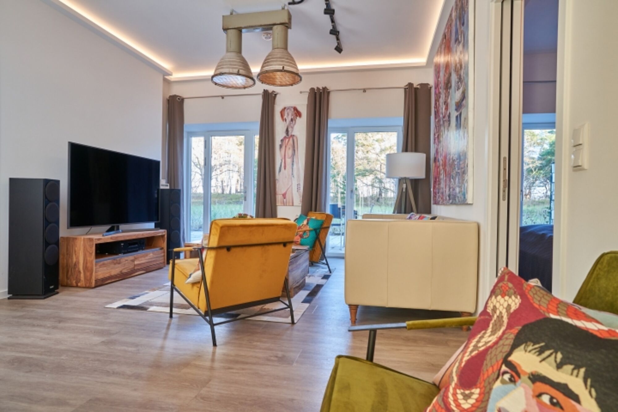 Wohn- / Essbereich: Der offene Wohnbereich ist geschmackvoll eingerichtet und bietet ein gemütliches Sofa, einen separaten Sitzbereich und einen Essbereich für gemeinsame Mahlzeiten.
