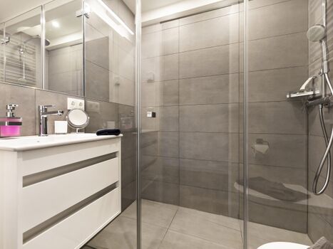 Im 2. Obergeschoss finden Sie zwei stilvoll eingerichtete Schlafzimmer. Das erste Schlafzimmer verfügt über ein Doppelbett und einen eigenen Balkon mit Blick auf das glitzernde Meer. Das zweite Schlafzimmer bietet ebenfalls ein bequemes Doppelbett. Zwei moderne Badezimmer mit Dusche sorgen für morgendliche Erfrischung, und ein zusätzliches Gäste-WC im 3. Obergeschoss ist äußerst praktisch.