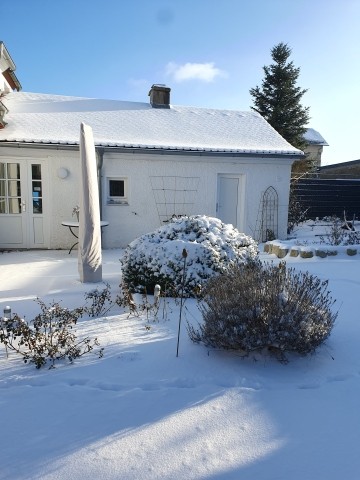 Auf zwei Stockwerken und einer offenen Galerie unter dem Dach finden sie einen großzügigen Wohnbereich mit offener Küche, Essplatz und Wohnzimmer mit ebenerdigem Zugang zur Terasse in den Rosengarten, der komplett eingezäunt ist.