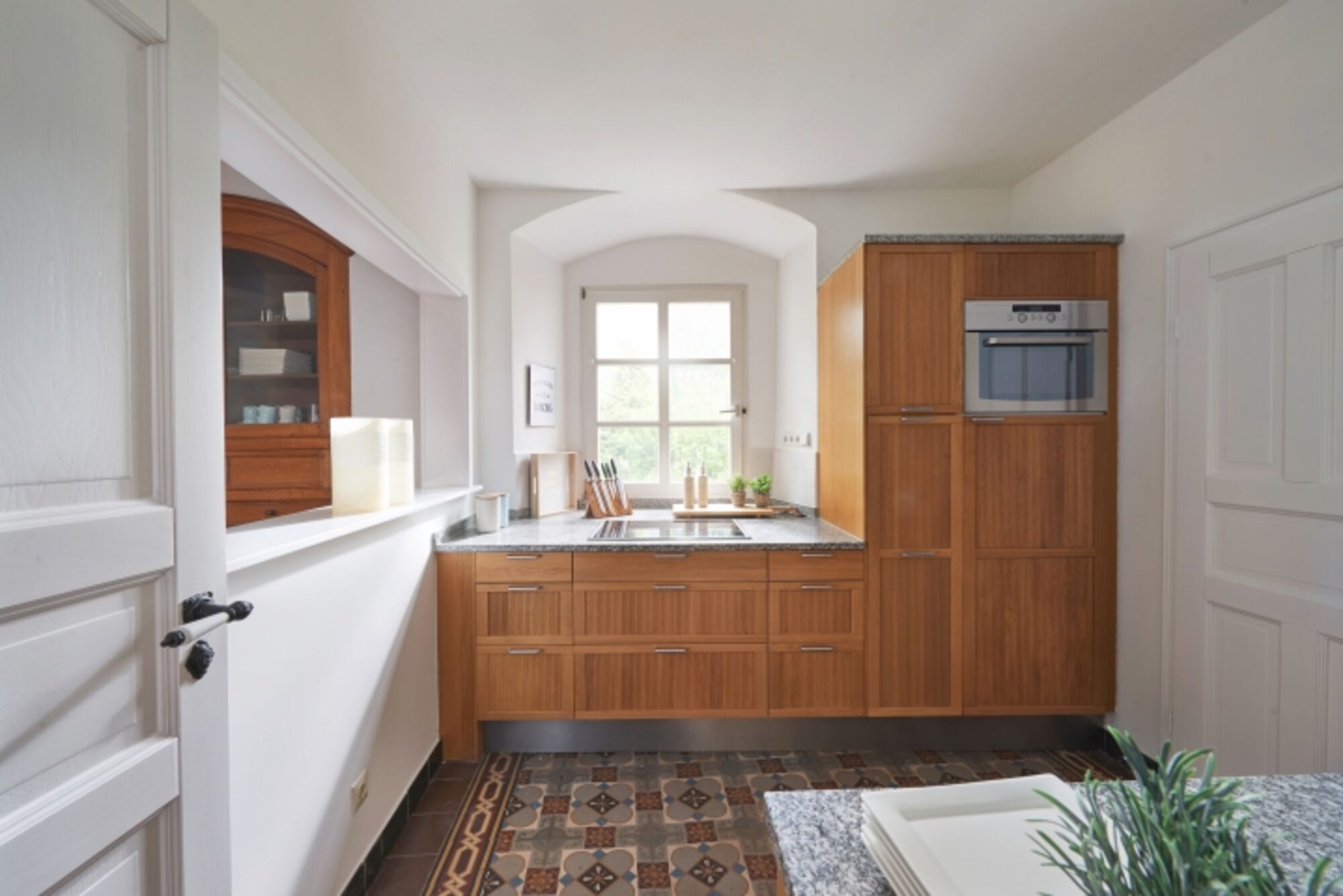 Sie betreten das Ferienhaus durch einen historischen Flur mit original alten Fliesen und einer imposanten Treppe.