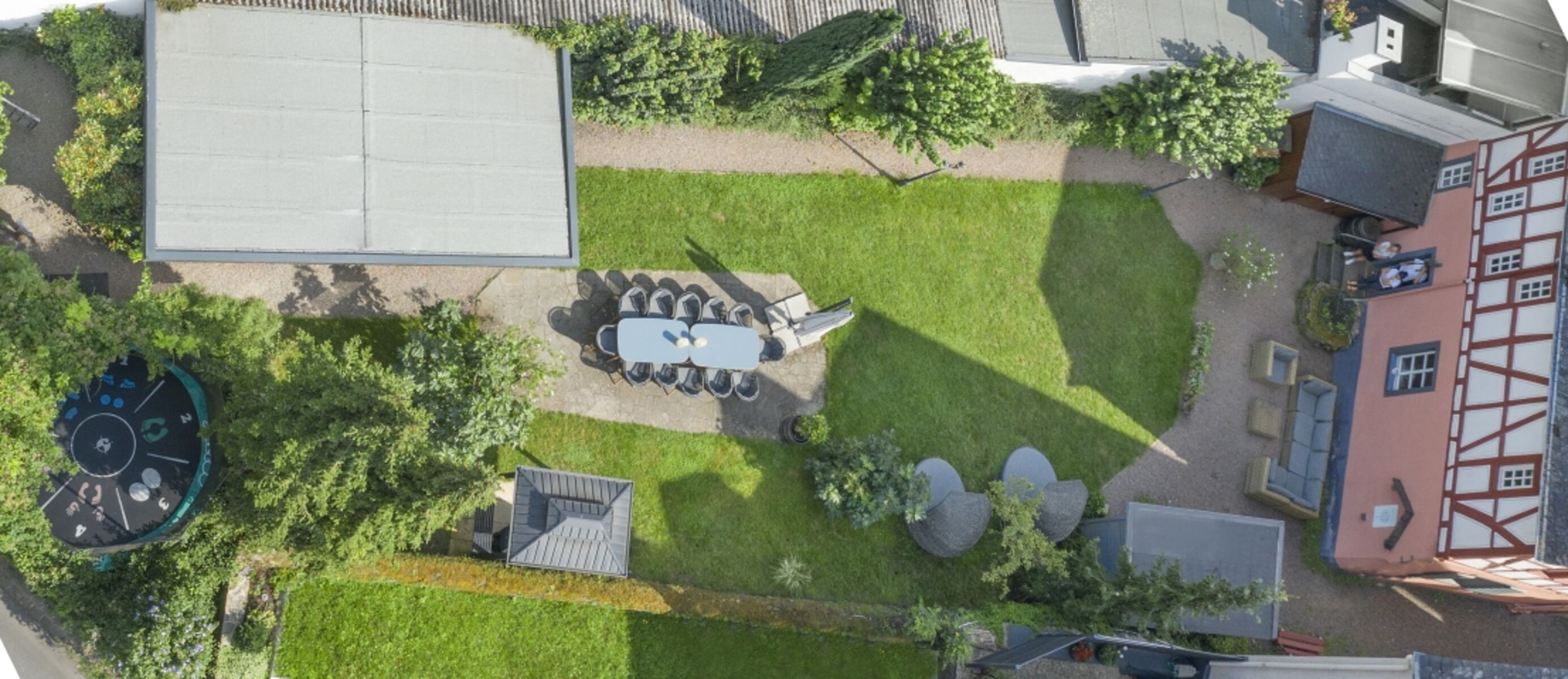 • Abgeschlossener großer Garten mit Terrasse, sicher für Kinder und Hunde
