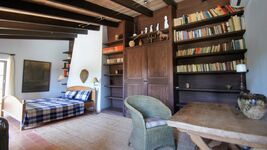 Das Anwesen besteht aus einem zentralen Landhaus mit Nord- und Südflügel sowie mehreren Wirtschaftsgebäuden rund um einen Innenhof. Insgesamt stehen den Gästen über 300 m² Wohnfläche zur Verfügung, verteilt auf drei großzügige Schlafzimmer, drei Badezimmer, eine Küche, eine Bibliothek, ein Kaminzimmer und einen Wintergarten.