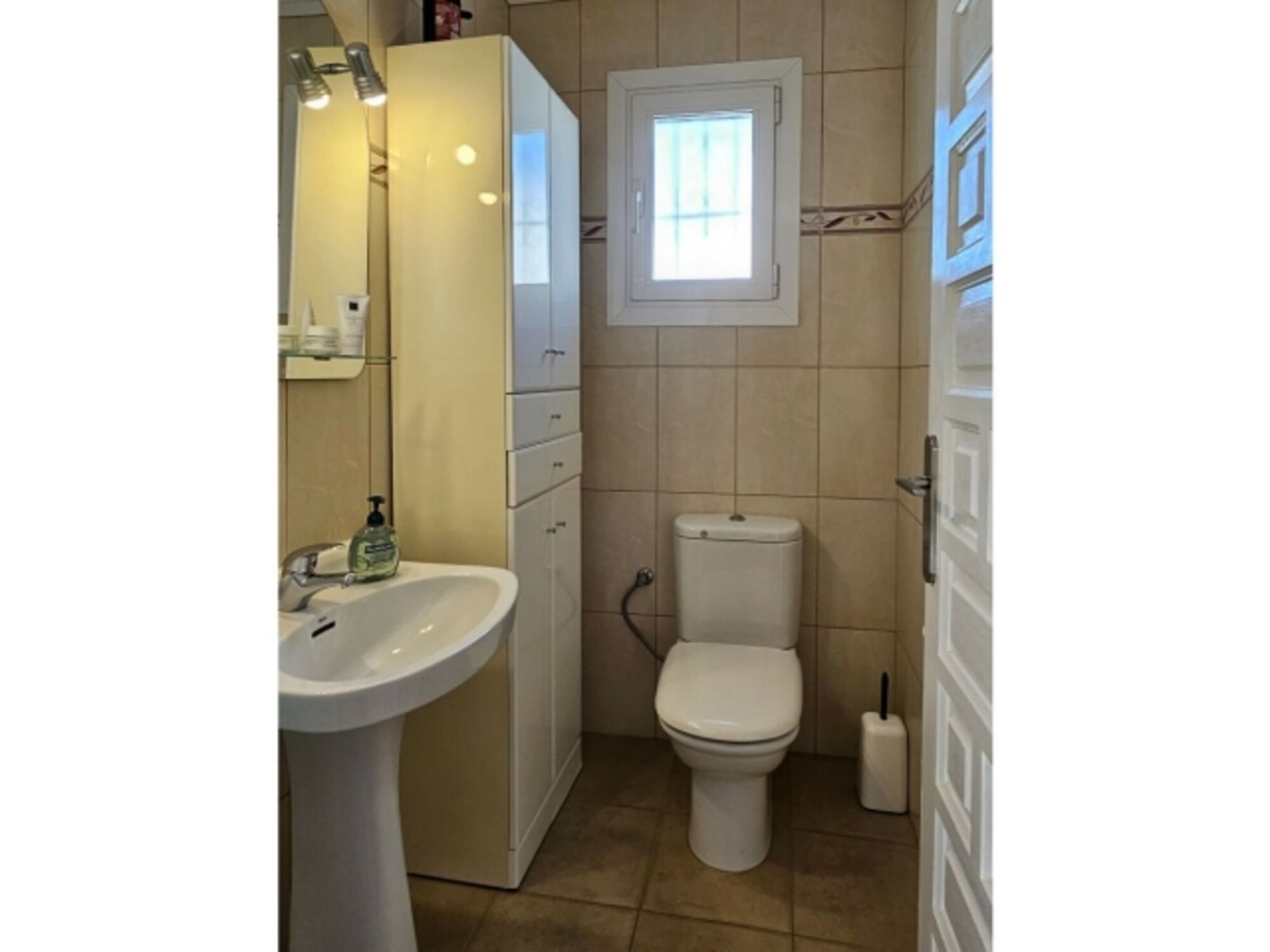 Handtuchheizkörper und Infrarotspiegel Waschbecken, Spiegel, Fenster im Bad, Fliegengitter