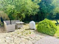 Liegewiese, Gartenmöbel, Kohlegrill, Hof