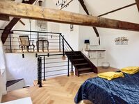 zusätzlich Maisonette mit Leseecke und Bad Doppelbett 1,80 x 2,00m, Kommode, Spiegel, Leselampe am Bett