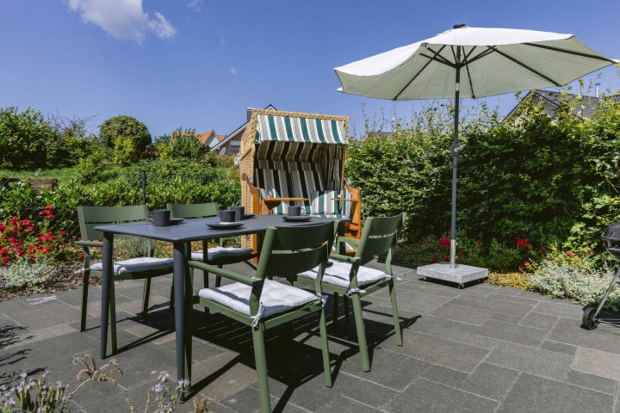 Liegewiese, Gartenmöbel, Kohlegrill