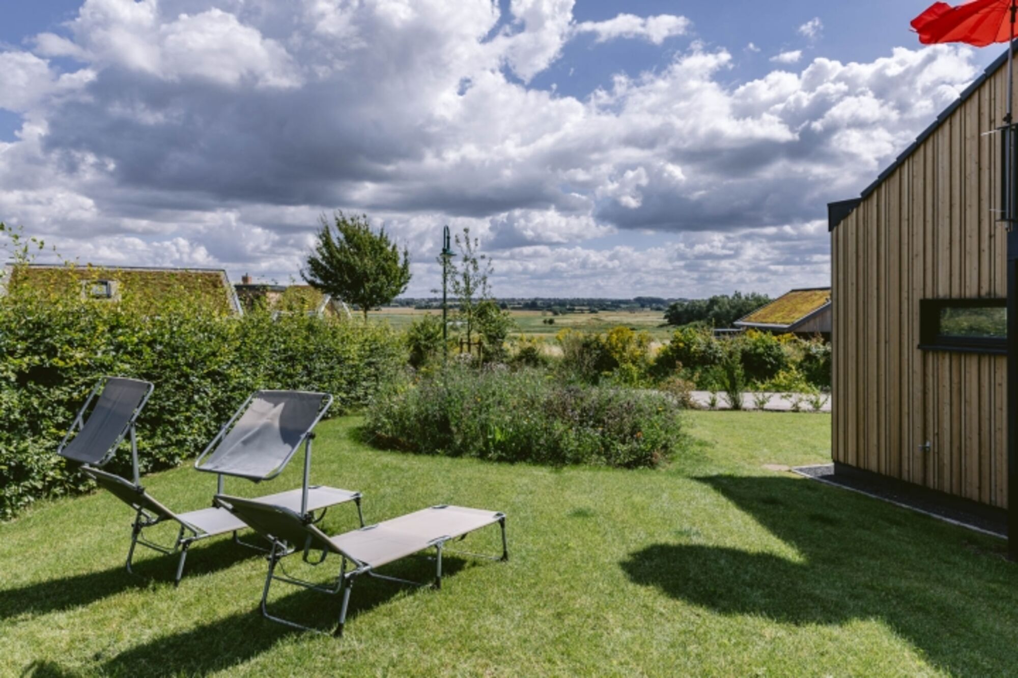 Für Ihre Bequemlichkeit stehen zwei extra breite PKW-Stellplätze zur Verfügung, sodass Sie sich keine Sorgen um die Parkplatzsuche machen müssen. Zwei Terrassen, Rasen und Blühwiese laden dazu ein, die frische Ostseeluft zu genießen und sich im Freien zu entspannen.