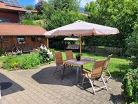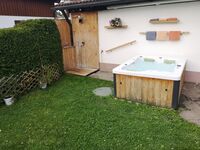 Die große Garten-Terrasse mit Esstisch, großem Sonnenschirm und Bestuhlung bis sechs Personen, laden zum Grillen und zum gemütlichen Beisammensein ein. Eine Feuerstelle für kühle Abende sowie ein Grill sind vorhanden. Der Outdoor-Whirlpool befindet sich auf unserem Gartengrundstück und wird, nach vorheriger Absprache mit euch, auf eure Temperatur- und Nutzungszeit-Wünsche programmiert. Selbstverständlich wird auch hier eure Privatsphäre gewährt.
