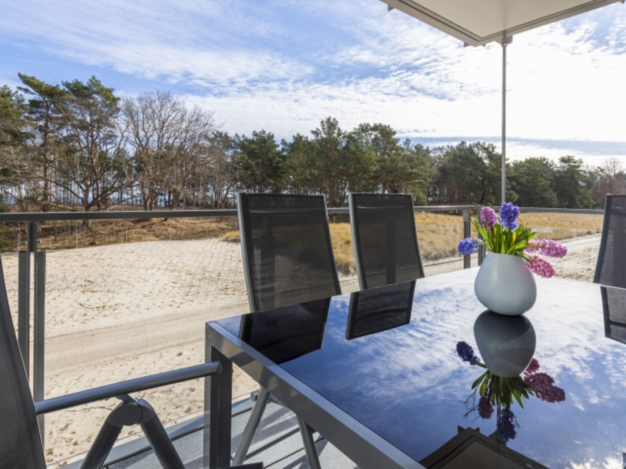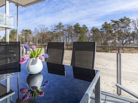 Genießen Sie die Aussicht auf die Dünenlandschaft und das Meer, entspannen Sie auf dem Balkon oder nutzen Sie den direkten Strandzugang für einen Spaziergang am Ostseestrand.
