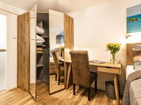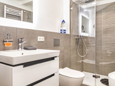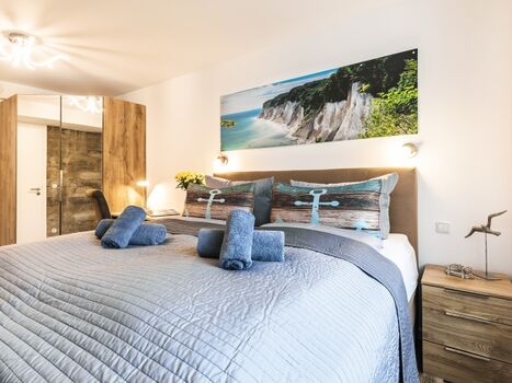 Die modern und liebevoll ausgestattete Nichtraucherwohnung befindet sich im 1.Obergeschoss des Hauses "Zudar" in Block III. Beim Betreten des Wohnzimmers blicken Sie durch die riesige Fensterfront mit Schiebetür auf den großen Balkon in Richtung Meer. Das sonnendurchflutete Apartment besitzt zwei Schlafzimmer, beide mit einem Boxspring-Doppelbett (180x200cm) und einem Schreibtisch mit LAN-Anschluss. Zudem befindet sich im Wohnzimmer ein Ledersofa mit integrierter Matratze (140x190cm). Alle Fenster können verdunkelt werden. Für den optimalen Schlafkomfort stehen verschiedene Bettdecken und Kissen bereit. Insektenschutzgitter und Ventilatoren sorgen in beiden Schlafzimmern für einen erholsamen Schlaf auch im Sommer. Der großzügige Esstisch lässt die Familie zusammenkommen. Gleich daneben können Sie köstliche Speisen in einer modernen, vollausgestatteten Küche zubereiten. Zwei hochwertig ausgestattete Duschbäder mit WC lassen Raum für Privatsphäre. In der großzügigen Garderobe haben sie genügend Platz für Jacken und Schuhe.