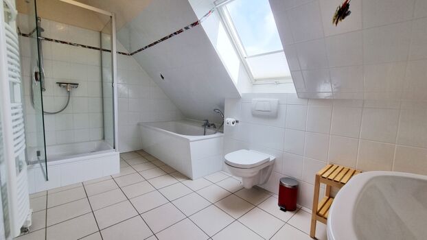 Badezimmer II (OG): Dusche / Badewanne / Waschbecken / WC / Föhn