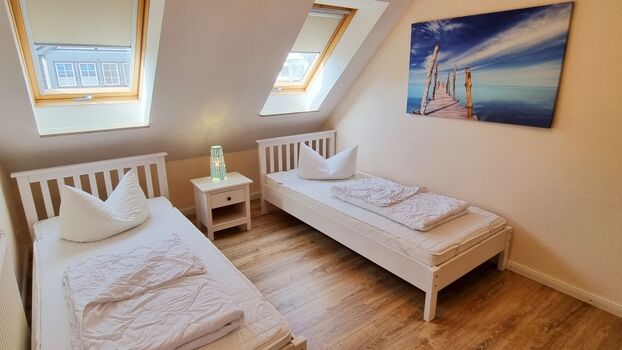 Schlafzimmer III: zwei Einzelbetten (90x200) / Schrank / Rollos