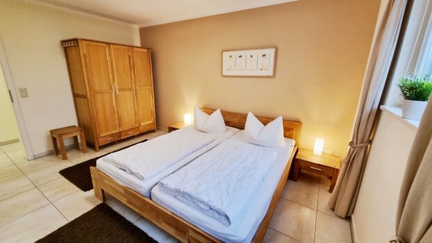 Schlafzimmer I: Doppelbett (180x200cm) / Schrank / Fernseher / Gardinen / Rollo / Fliegengitter
