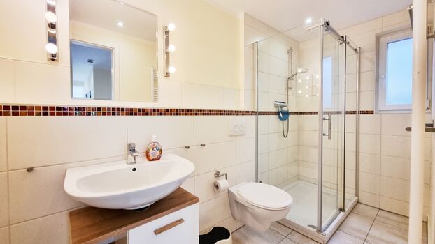 Badezimmer: Dusche / Waschbecken / WC / Föhn / Handtuchheizkörper