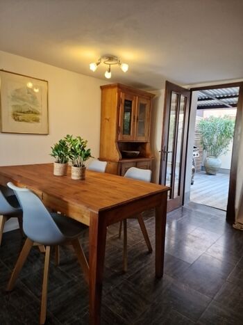 Unseren Gästen steht das komplette Haus inkl. teilüberdachter Terrasse, Hof und Garage mit automatischer Garagentoröffnung zur Verfügung