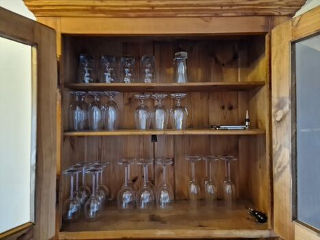 4-Platten Herd, Cerankochfeld, Dunstabzugshaube, Kühlschrank mit Gefrierfach, Gefrierschrank, Eierkocher, Korkenzieher / Flaschenöffner, Gewürze (Salz, Pfeffer, Zucker), Öl / Essig, Geschirrhandtücher, Mülltüten, Essplatz in der Küche