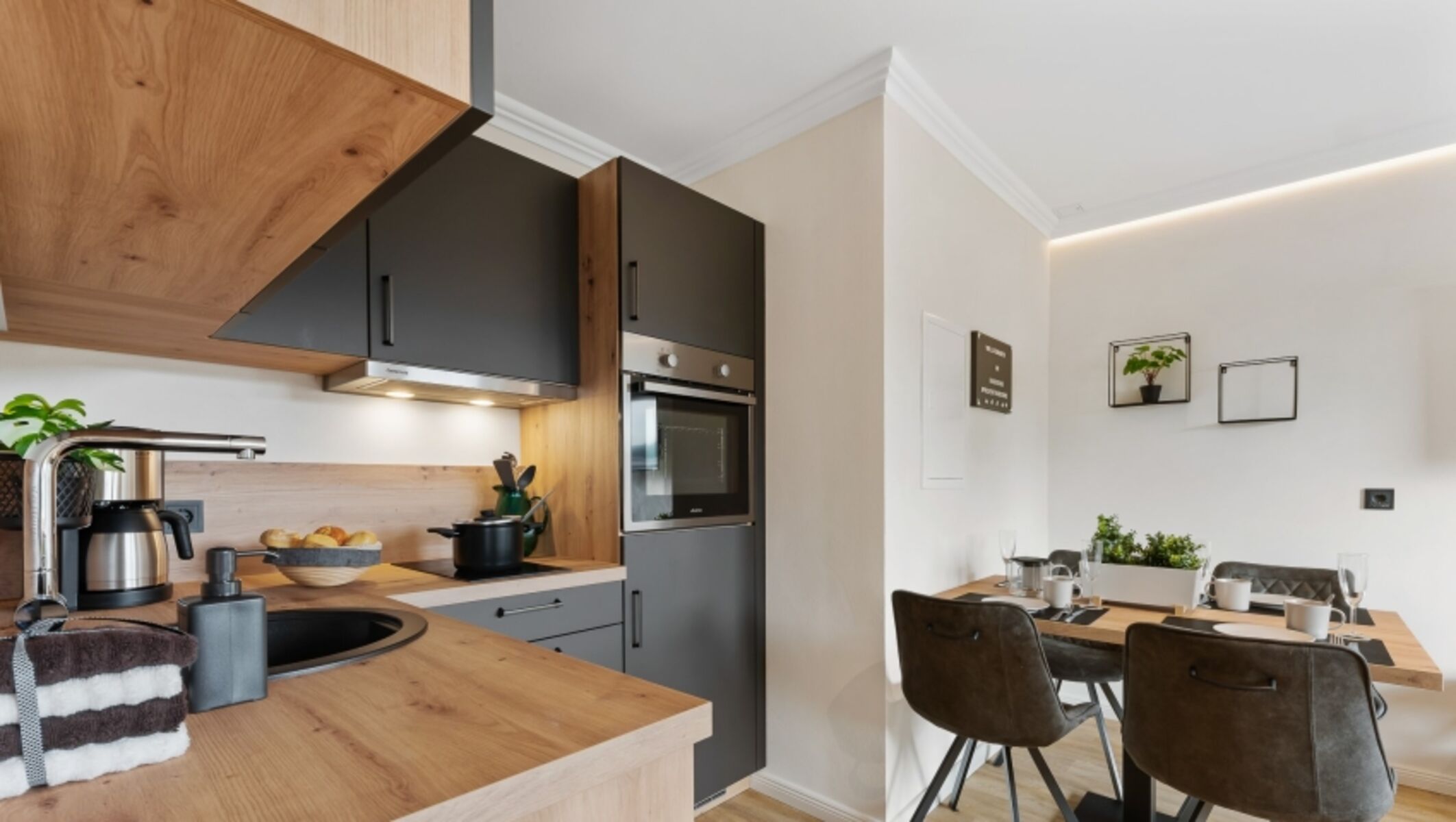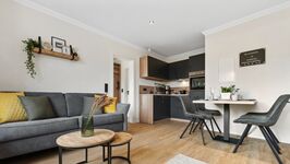 Das 1-Zimmer-Apartment ist mit einem Doppelbett und einer zusätzlichen Schlafcouch ausgestattet, so dass es für 2 Erwachsene und 2 Kinder super geeignet ist. Die Nutzung von WLAN ist kostenfrei möglich. Die moderne und voll ausgestattete Einbauküche ist ideal für Selbstversorger. Das Apartment verfügt über ein neues, ebenerdiges Duschbad mit WC.