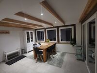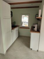 Die kleine neue Küche grenzt direkt an den ebenfalls neuen Essbereich im Wintergarten im Fachwerkstil. Das Badezimmer wurde saniert und verfügt über ein Waschbecken, WC und eine Dusche. Von der Terrasse dieses Hauses hat man einen schönen freien Blick auf den Teppnitzbach, der zum Neuklostersee führt. Das Haus verfügt über High-Speed-Internet mit Glasfaseranschluss. Im Obergeschoss befinden sich die beiden Schlafzimmer mit Schrank und Schranknischen/-regalen. Im größeren Schlafzimmer gibt es ein 1,80m breites Bett; im kleineren ist das Bett 1,40 m breit. Alle Räume sind hell und komfortabel eingerichtet.