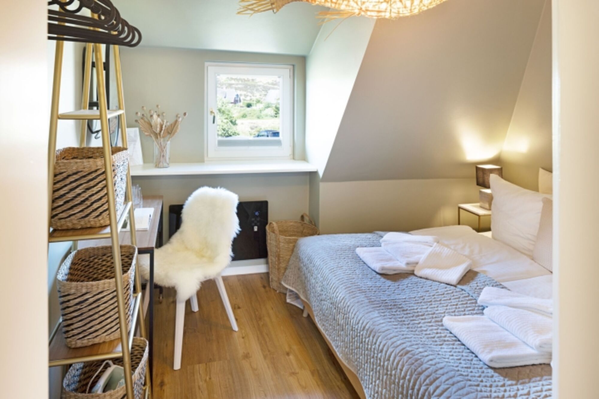 Diese Reetdach Ferienwohnung mit Meerblick eignet sich ideal für Paare die Ruhe und Erholung suchen. Die Wohnung besticht durch ihre moderne und dennoch gemütliche Einrichtung. In wenigen Minuten ist man fußläufig am Wattenmeer oder beim beliebten Restaurant L.A. Sylt, Lister Austernperle. Das Meer ist hier zum Greifen nah.