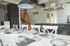 Im lichtdurchfluteten Wohnzimmer findet ihr eine große Couch, einen TV und als Highlight einen Kaminofen. Der offene und super ausgestattete Wohn-/Essbereich ist ganz klar das Herz des Hauses. Hier gibt es den ersten Kaffee/Tee am morgen und das letzte Glas Wein am Abend.