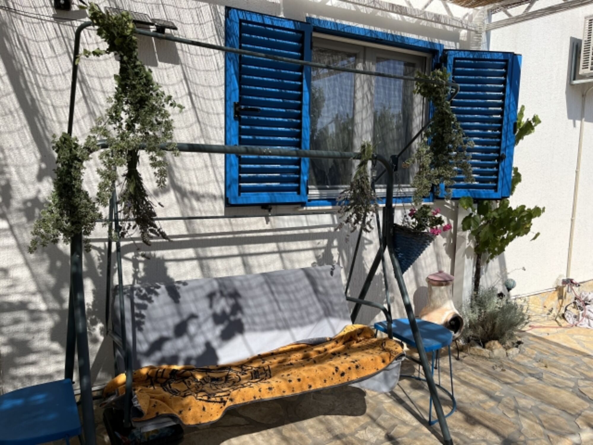 Das Apartment verfügt über einen großen landestypischen Außenbereich mit Holzkohlegrill.