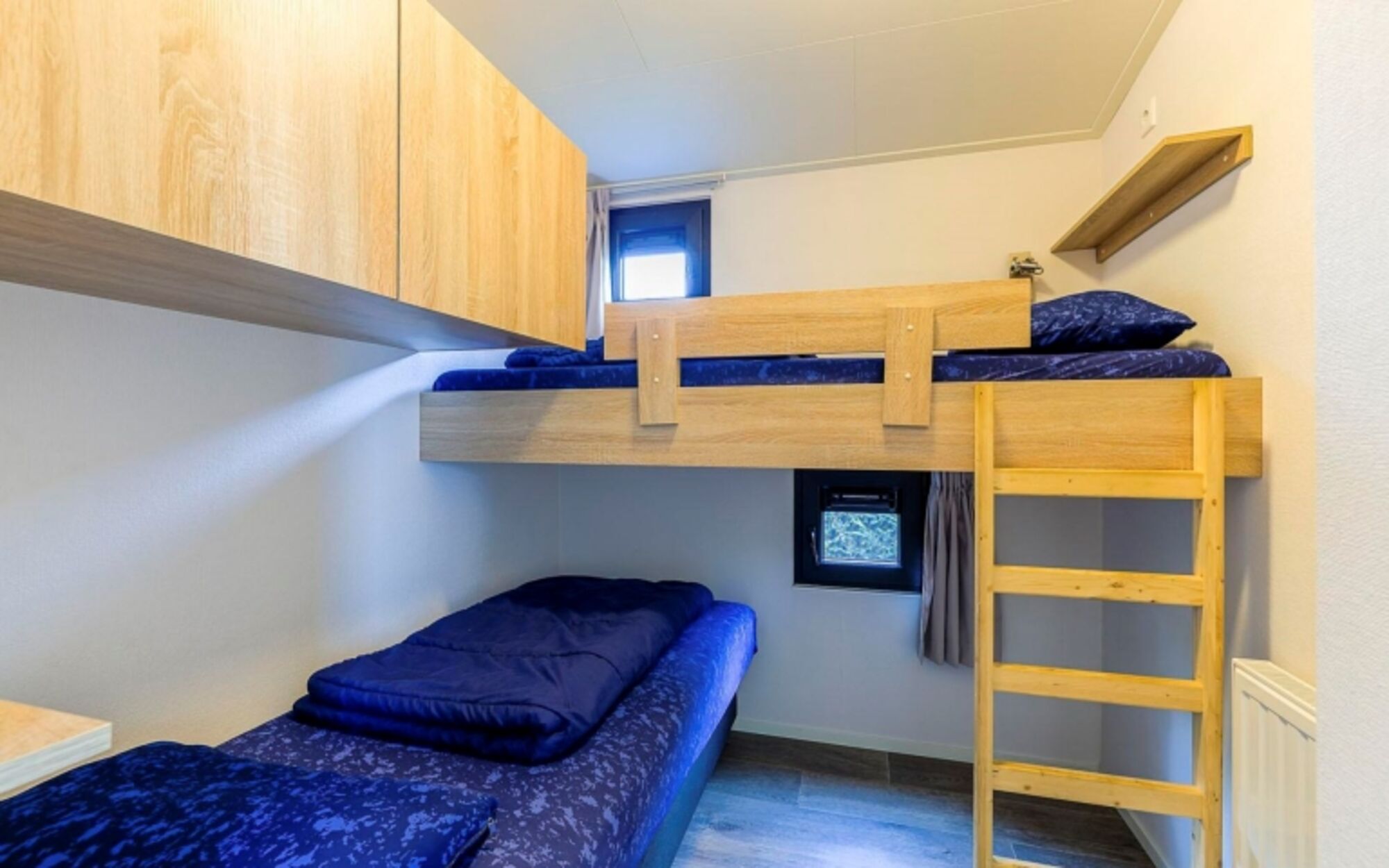 Etagenbett über Eck Einzelbett, Leselampe am Bett