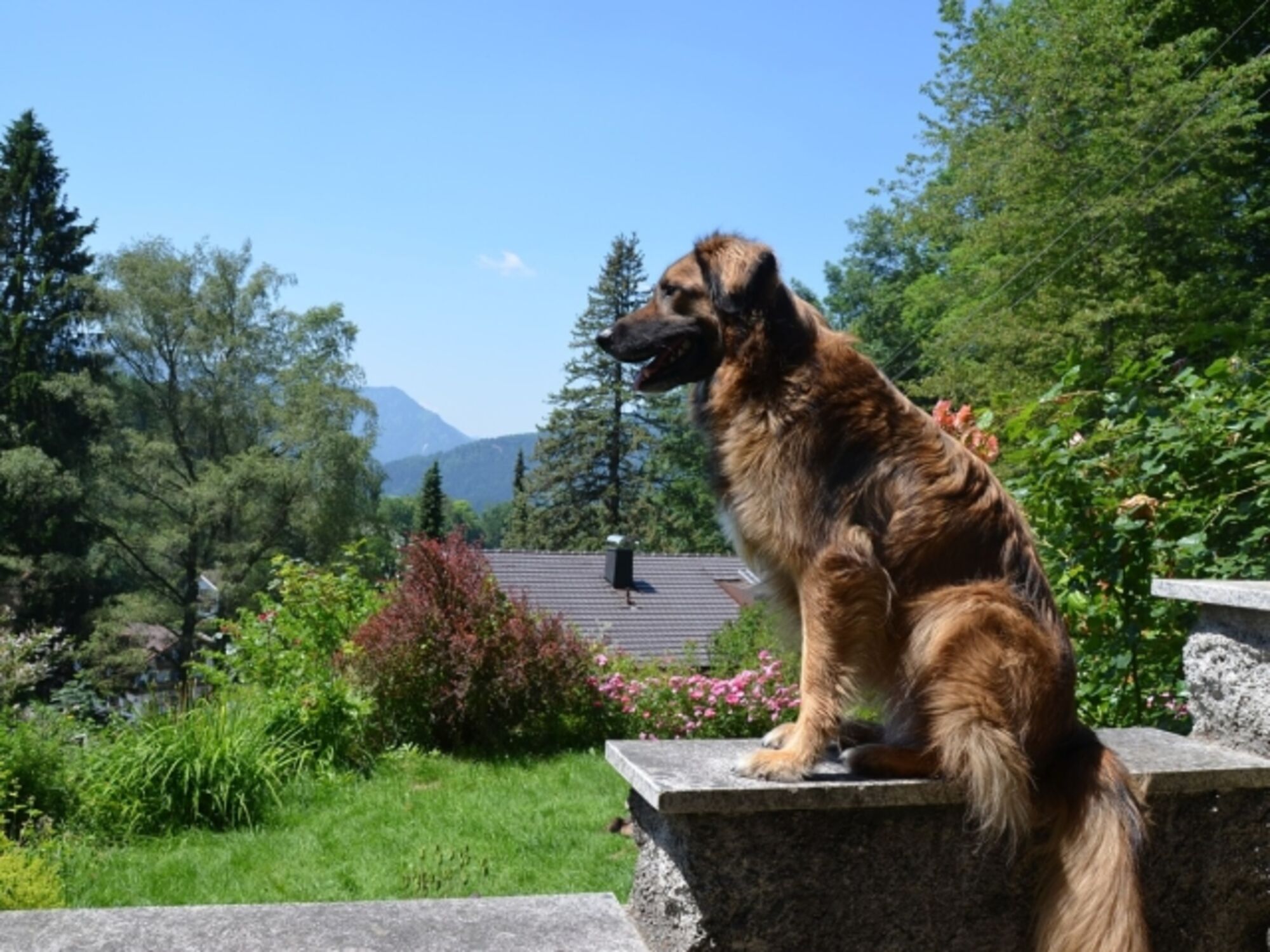 Ideal für Urlaub mit Hund: Das Haus liegt in einem großen, eingezäunten Garten, der Ihnen zur Alleinnutzung zur Verfügung steht. Von der überdachten und geschützten Terrasse genießen Sie einen herrlichen Bergblick in die bayerischen Alpen! Wenn die Hunde in der Nähe bleiben sollen, kann der Bereich zudem mit einem Tor verschlossen werden.