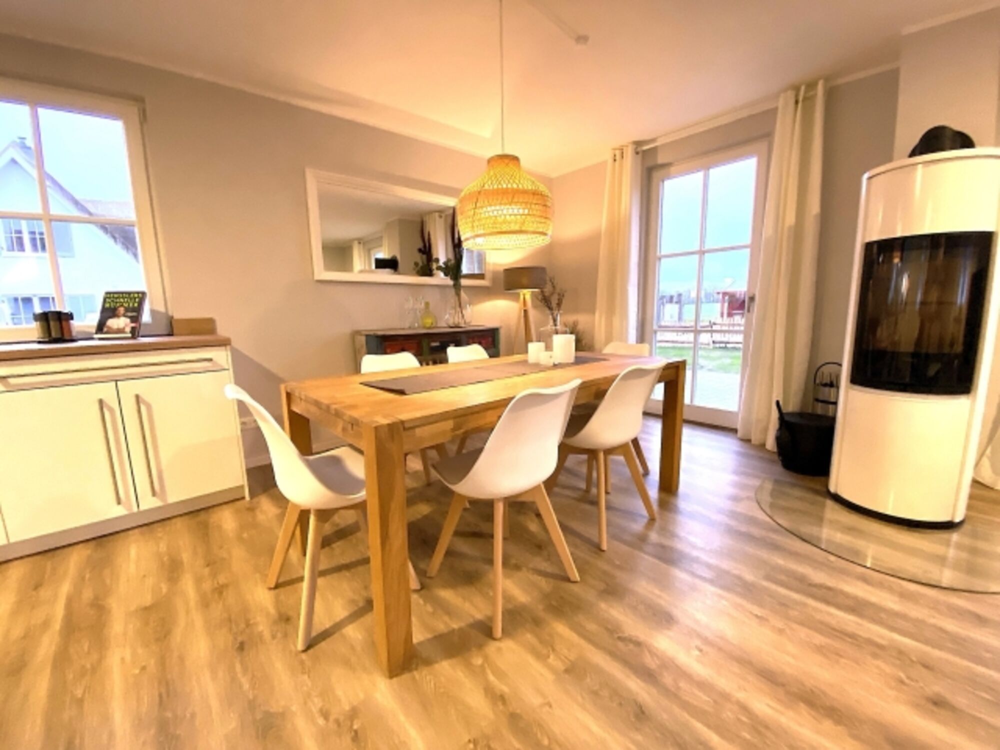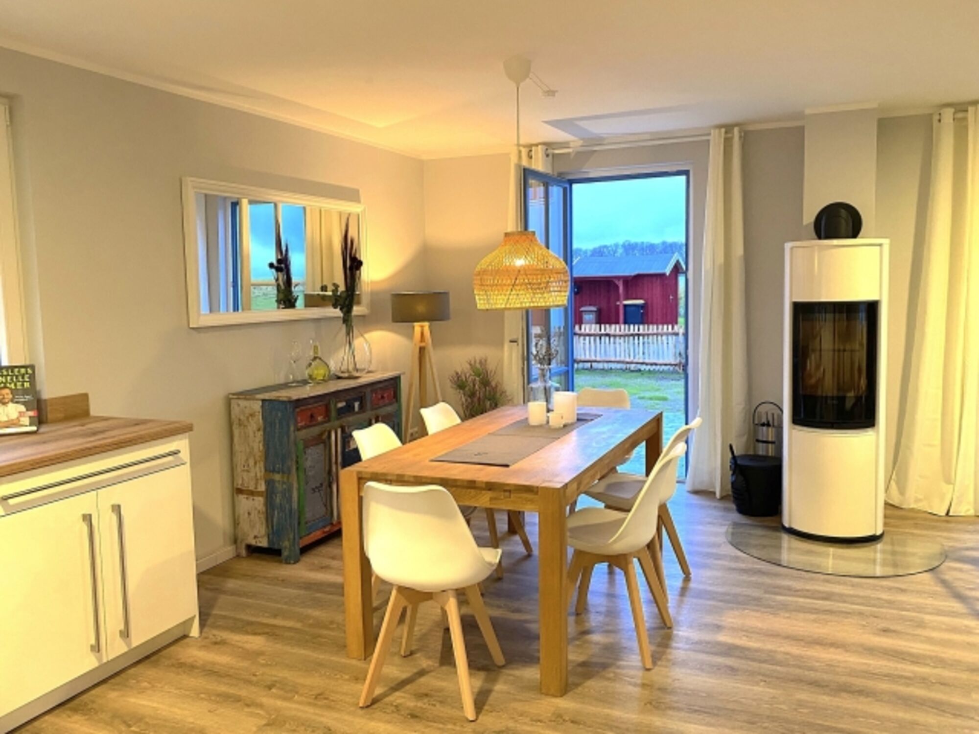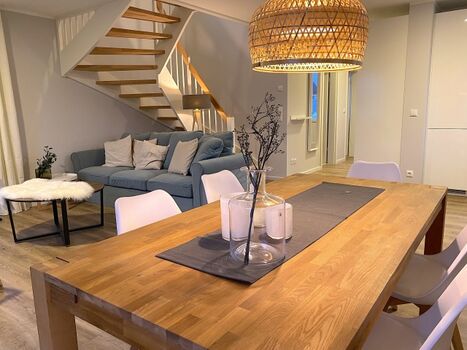 Der charmante Wohnbereich besticht durch das gemütliche Relax-Sofa und lädt zum entspannten Verweilen ein. Das hochwertige 55 Zoll-SAMSUNG-Smart-TV sorgt für Information und Unterhaltung. Genießen Sie unser kostenfreies WLAN-Internet und loggen Sie sich wie zu Hause jederzeit in Ihre bevorzugten Streamingportale von Prime, Sky, Netflix usw. ein. Für Regentage im geselligen Kreis von Freunden und Familie steht Ihnen eine Auswahl von Gesellschaftsspielen und Unterhaltungsliteratur zur Verfügung.