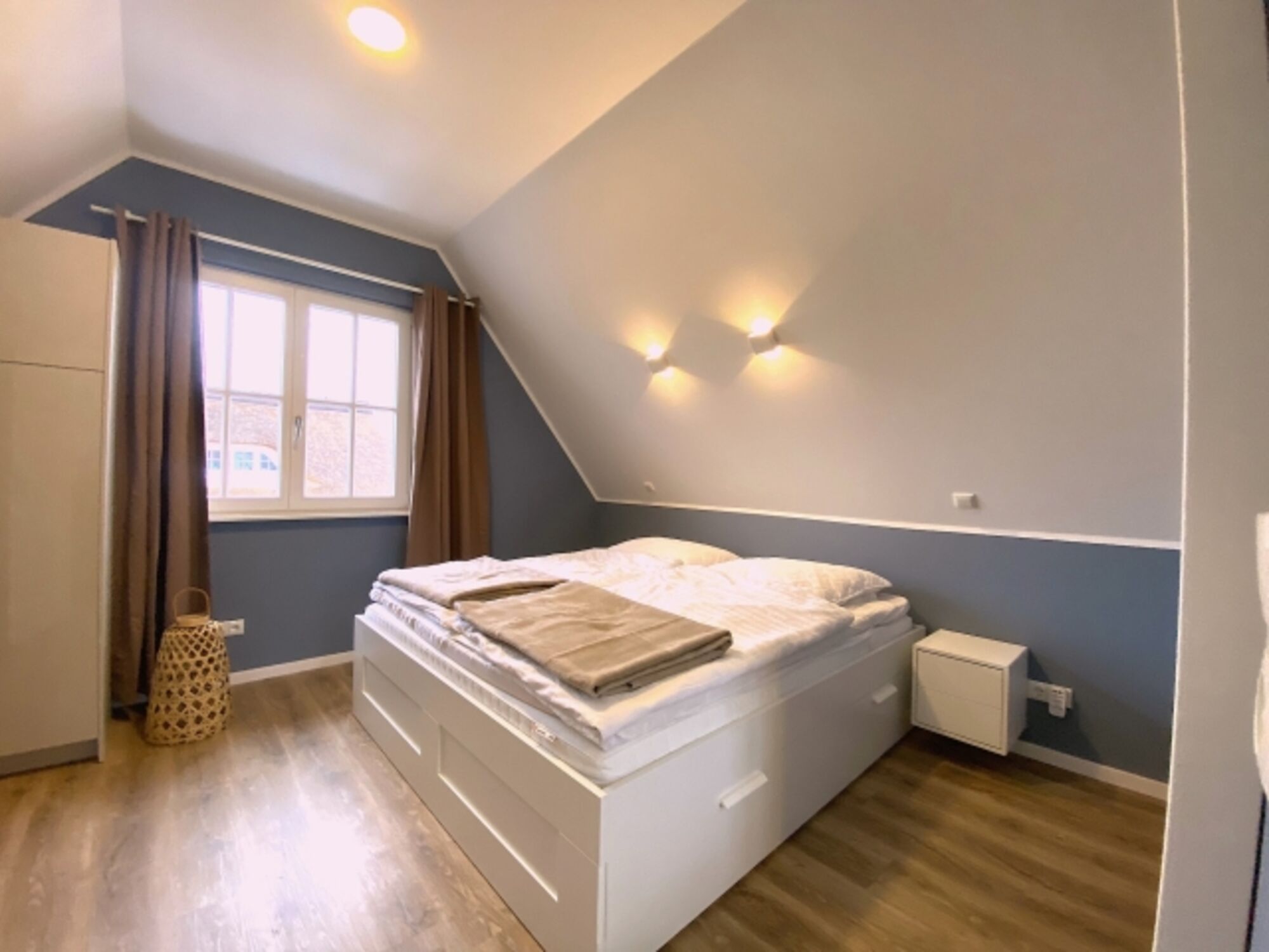 Die Schlafzimmer sind mit je einem Doppelbett (davon ein ausziehbares Einzelbett max. 170x200) sowie ausreichend Stauraum in Form von maßgefertigten Kommoden und Einbauschränken ausgestattet.